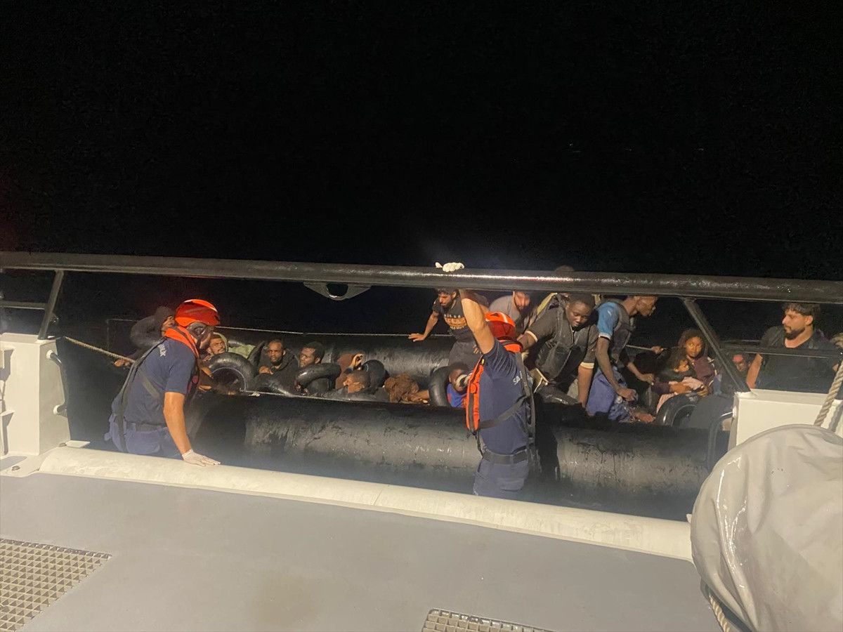 Bölgeye yönlendirilen Kıyı Güvenlik botu tarafından durdurulan lastik bottaki 5’i çocuk 30 sistemsiz göçmen yakalandı.