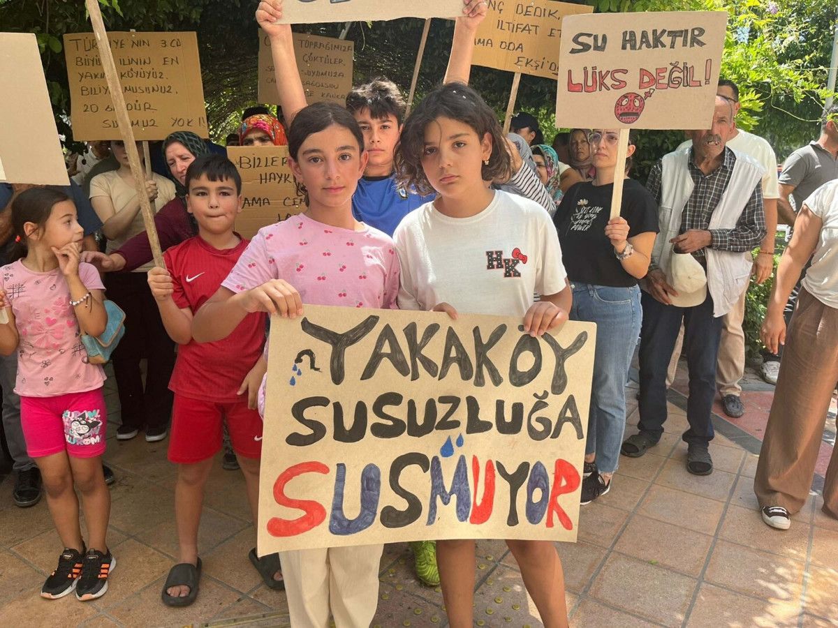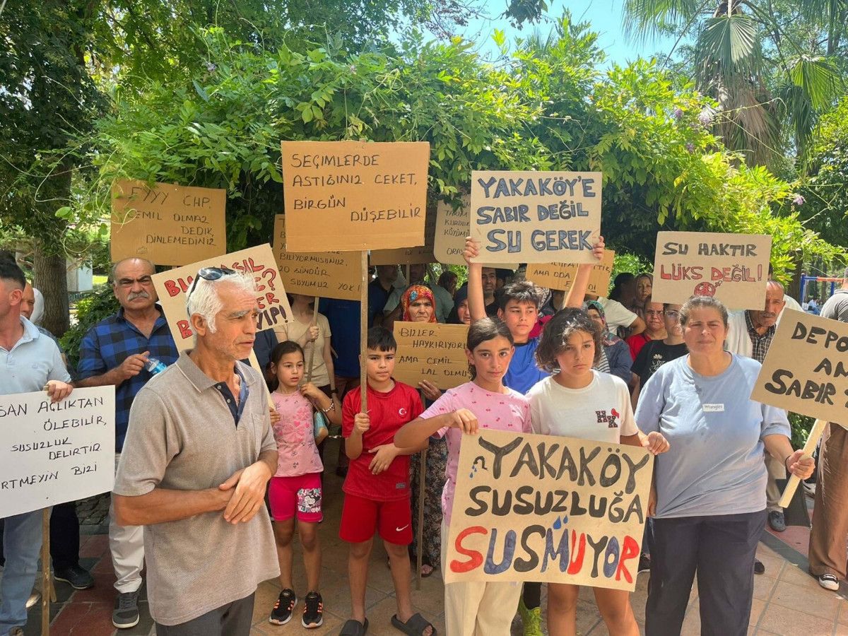 Yaklaşık 1600 hanenin bulunduğu Yakaköy Mahallesi’nde yaşayanlar, susuzluk sıkıntısına tahlil bulunmadığı gerekçesiyle Bornova Belediye binası önünde toplandı.