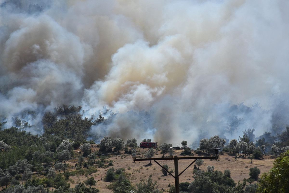 İzmir’in Menderes ilçesinin Kuyucak ile Seferihisar ilçesinin Orhanlı mahalleleri ortasındaki orman yangınının tesirli olduğu bölgeye destek olarak 12 uçak, 6 helikopter, 17 arazöz, 4 su ikmal aracı ve 1 dozer sevk edildi.