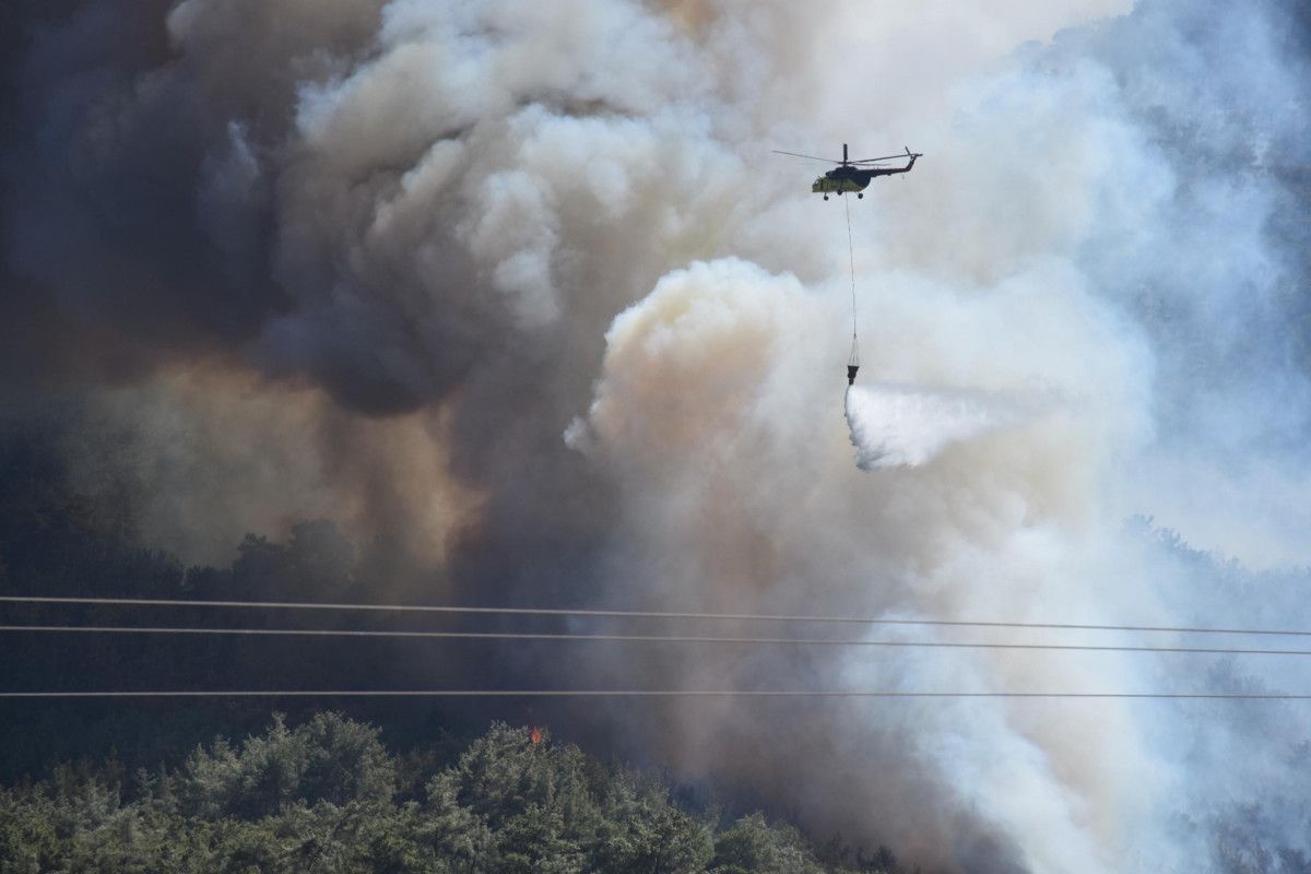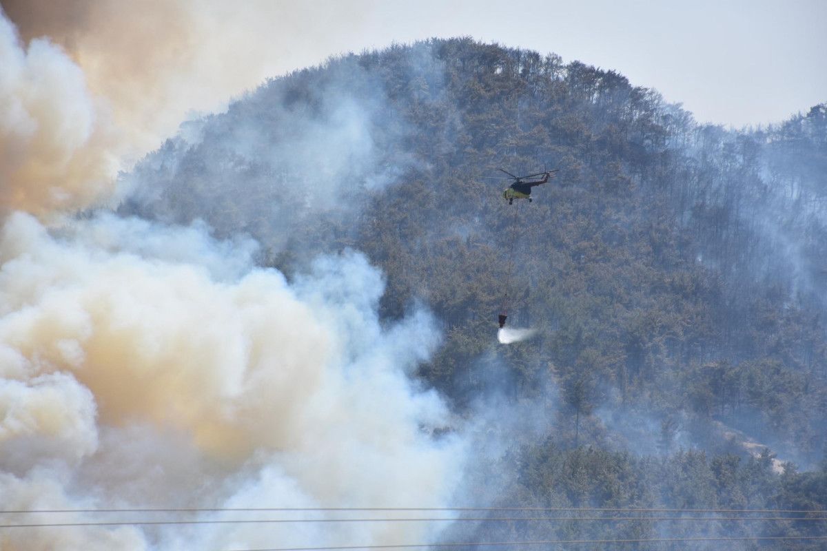 Öte yandan, birinci etapta kalkış yapamayan helikopterlerden 2’sinin rüzgarın tesirinin hafiflemesiyle havalanıp, alevlere müdahale etmeye başladığı bildirildi.