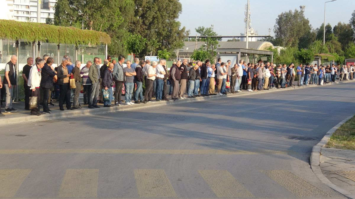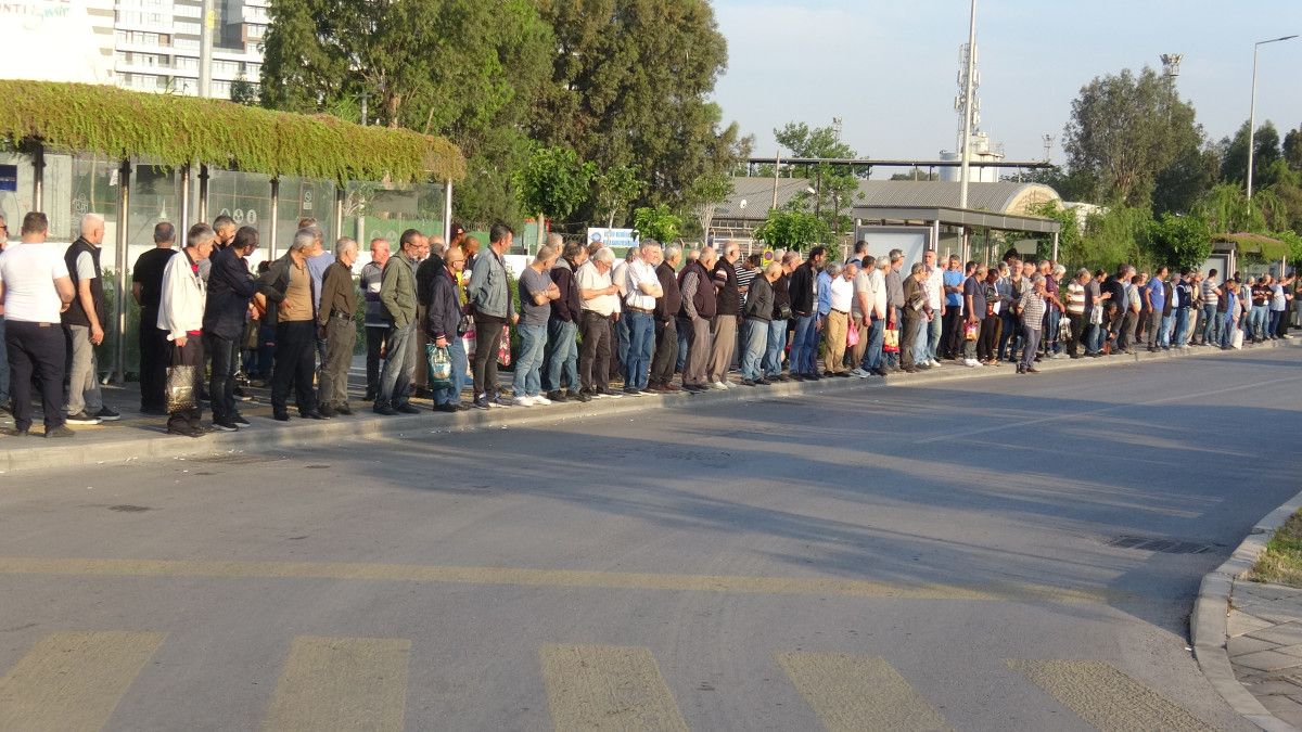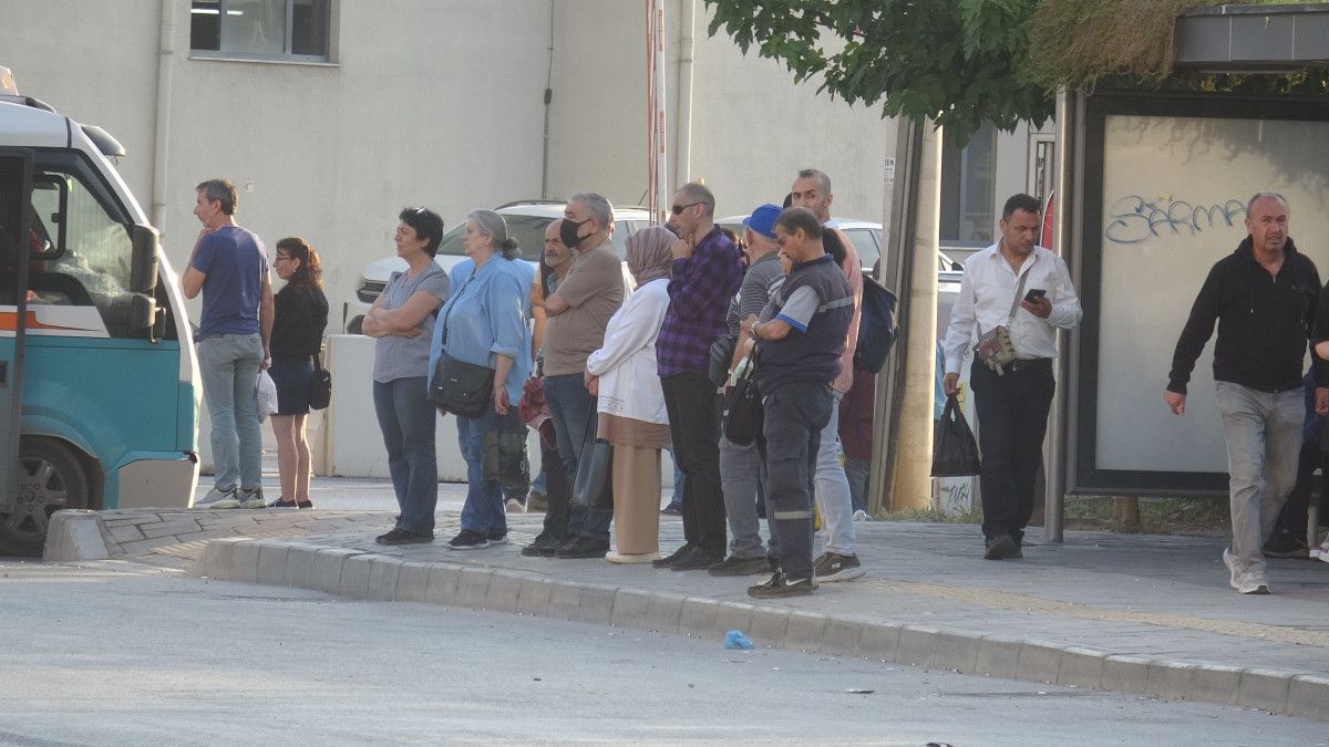 İşe gitmek için sabah saatlerinde yola çıkan vatandaşlar, otobüs duraklarında metrelerce kuyruk oluşturdu.