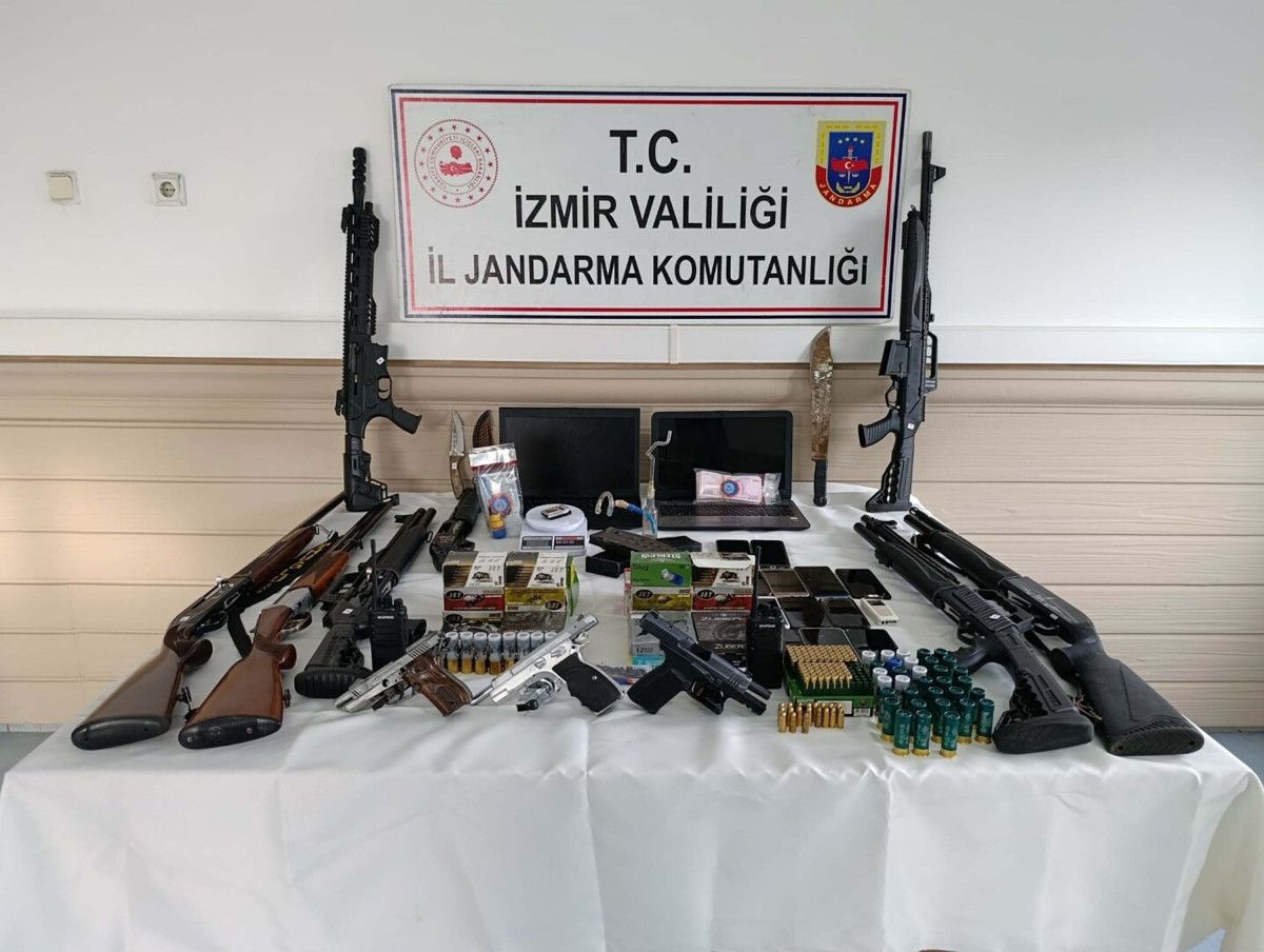 İzmir İl Jandarma Komutanlığı ekipleri, 21 Nisan’da şüphelilere yönelik eş zamanlı operasyon düzenledi.