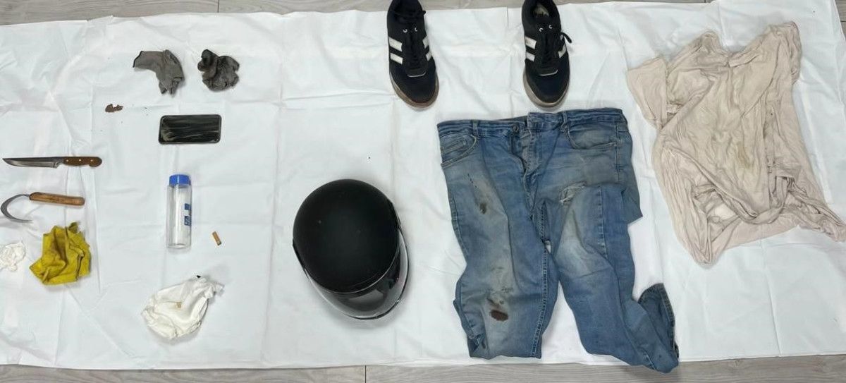 Gözaltına alınan N.E.T.’nin, olayın akabinde hata aleti olan iki bıçak, eldiven, kask, kanlı kıyafetler ve annesine ilişkin cep telefonunu ormanlık bir alana gizlediği tespit edilirken yapılan aramalarda, kelam konusu materyaller polis takımlarınca bulunarak ele geçirildi.