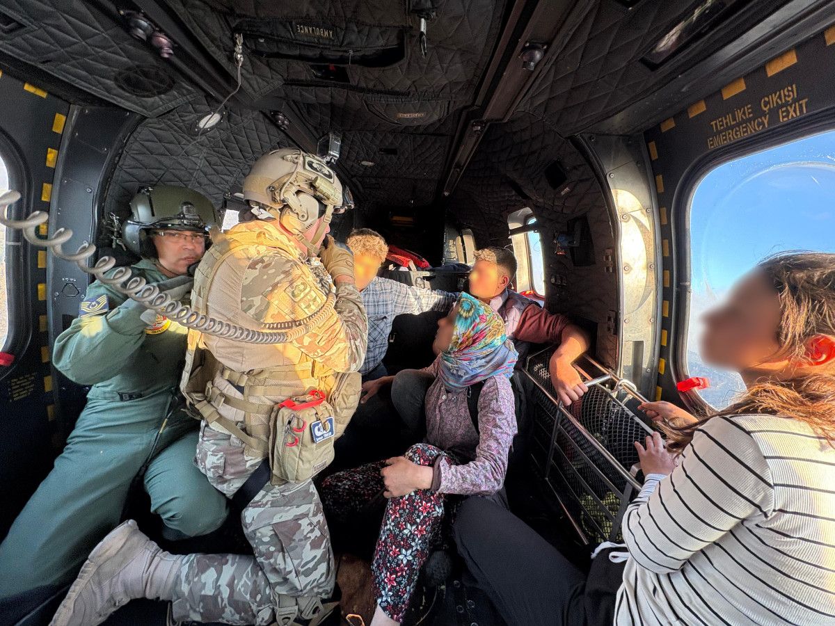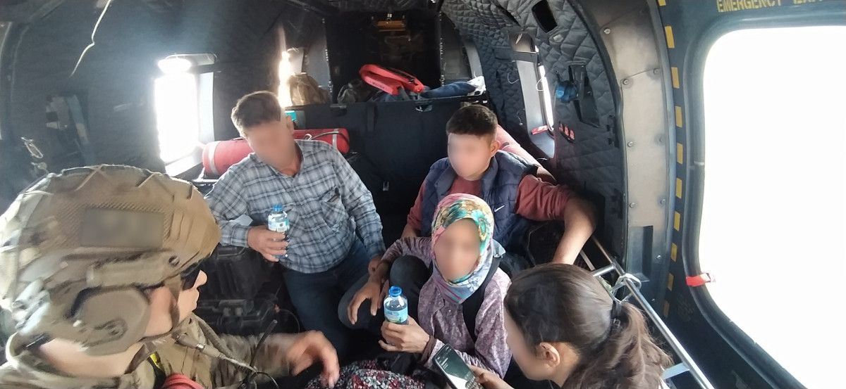 Hava Kuvvetleri işçimiz, kurtardıkları ailemizi helikopter ile inançlı bir halde tahliye ederek sıhhat gruplarına teslim etti.