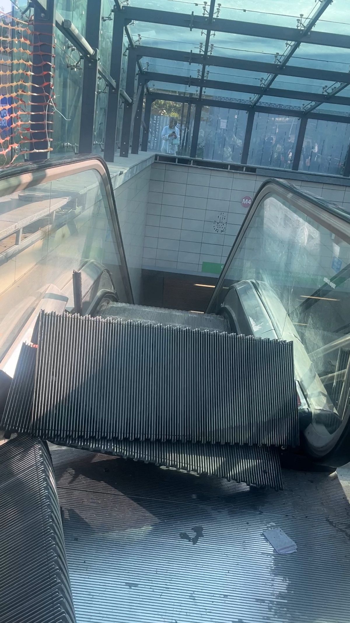 Arızanın giderildiği düşünülürken yürüyen merdiven ansızın kırıldı.