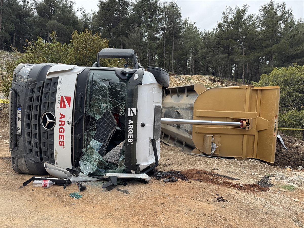 Kahramanmaraş’ın Dulkadiroğlu ilçesi Yeşiltepe Mahallesi’nde Mehmet Önal idaresindeki hafriyat kamyonu, döküm alanında yükünü boşaltırken devrildi.