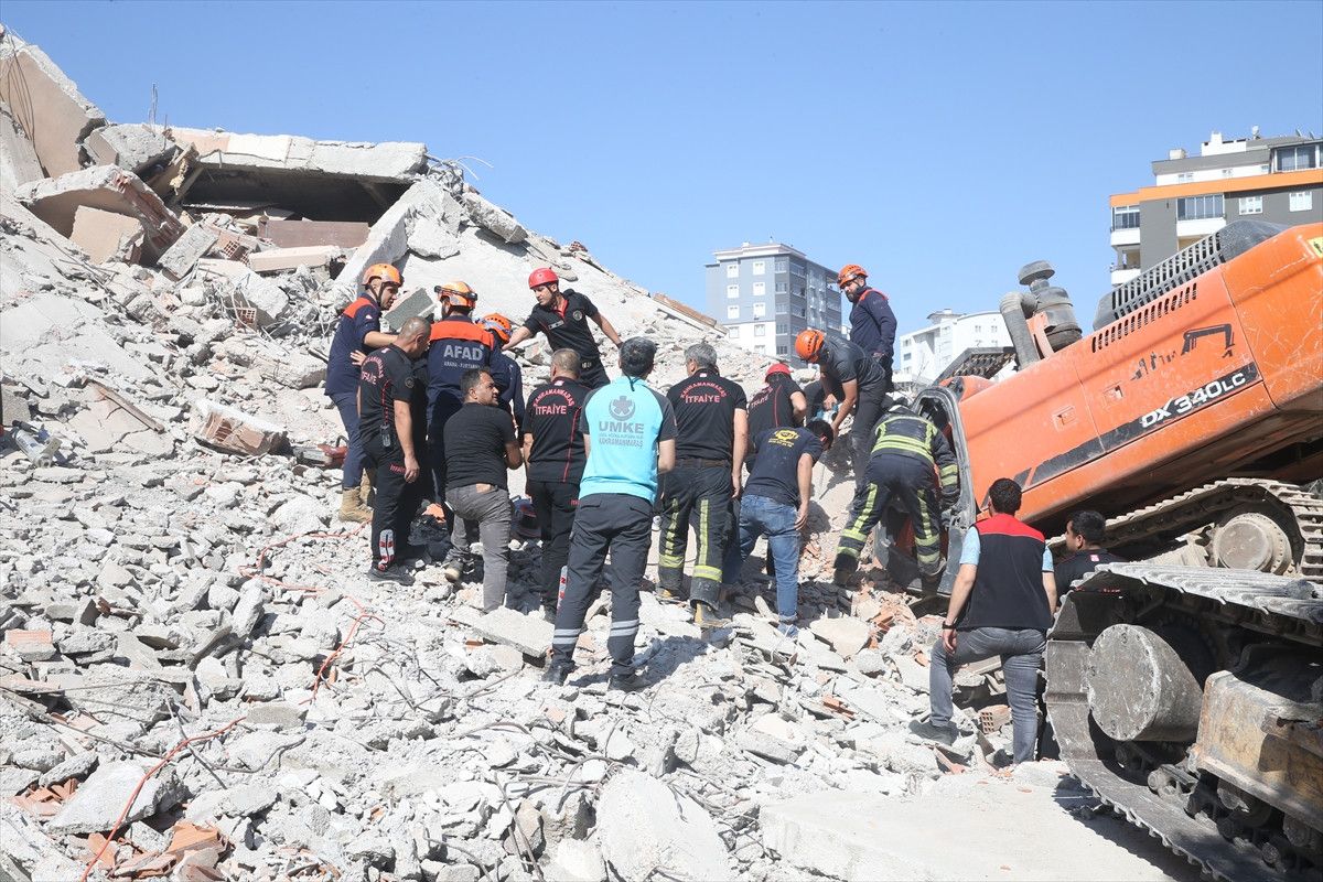 Ekipler enkaz altında kalan iş makinesi operatörü Ömürcan Akyürek’in kurtarılması için çalışma başlattı.