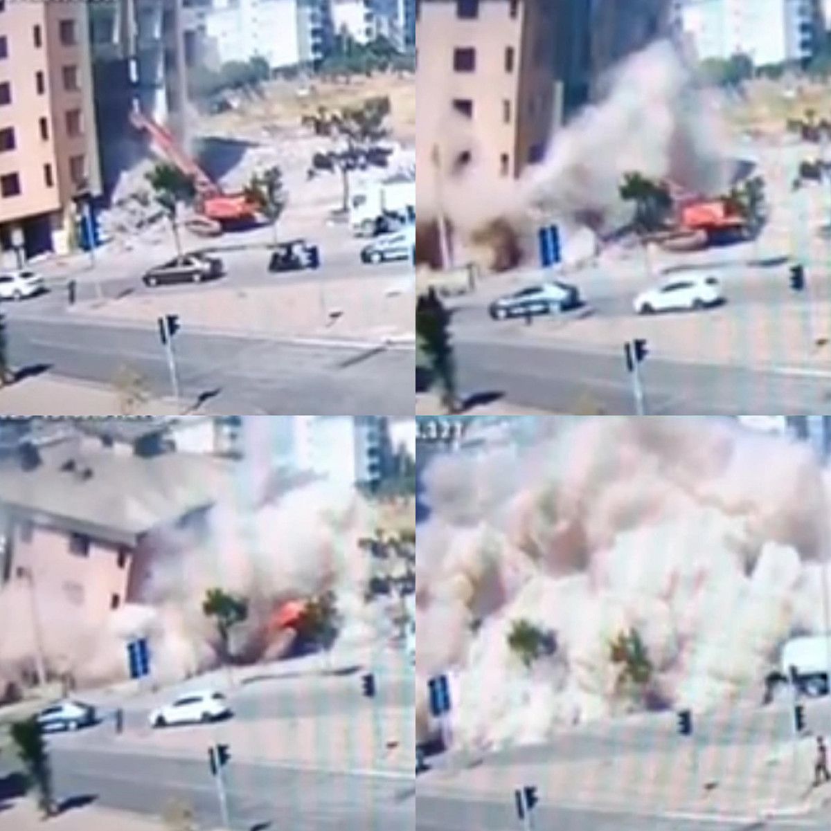Öte yandan, binanın yıkılma anı güvenlik kamerasınca kaydedildi.