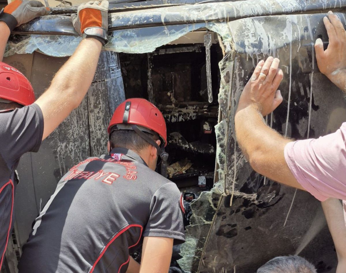 Araçta sıkışan şoför, itfaiye grupları tarafından kurtarılarak sıhhat gruplarına teslim edildi.