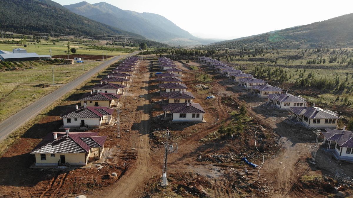 Kahramanmaraş’ın Göksun ilçesi Korkmaz Mahallesi’nde 6 Şubat 2023’teki sarsıntıların akabinde üretimine başlanan köy tipi afet konutlarında sona gelindi.