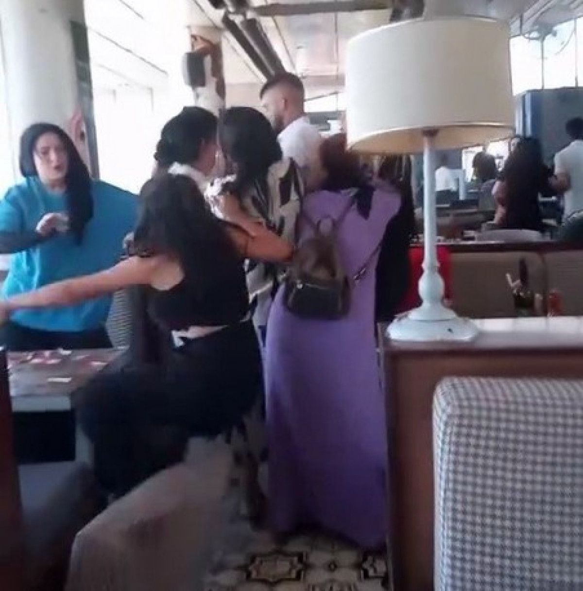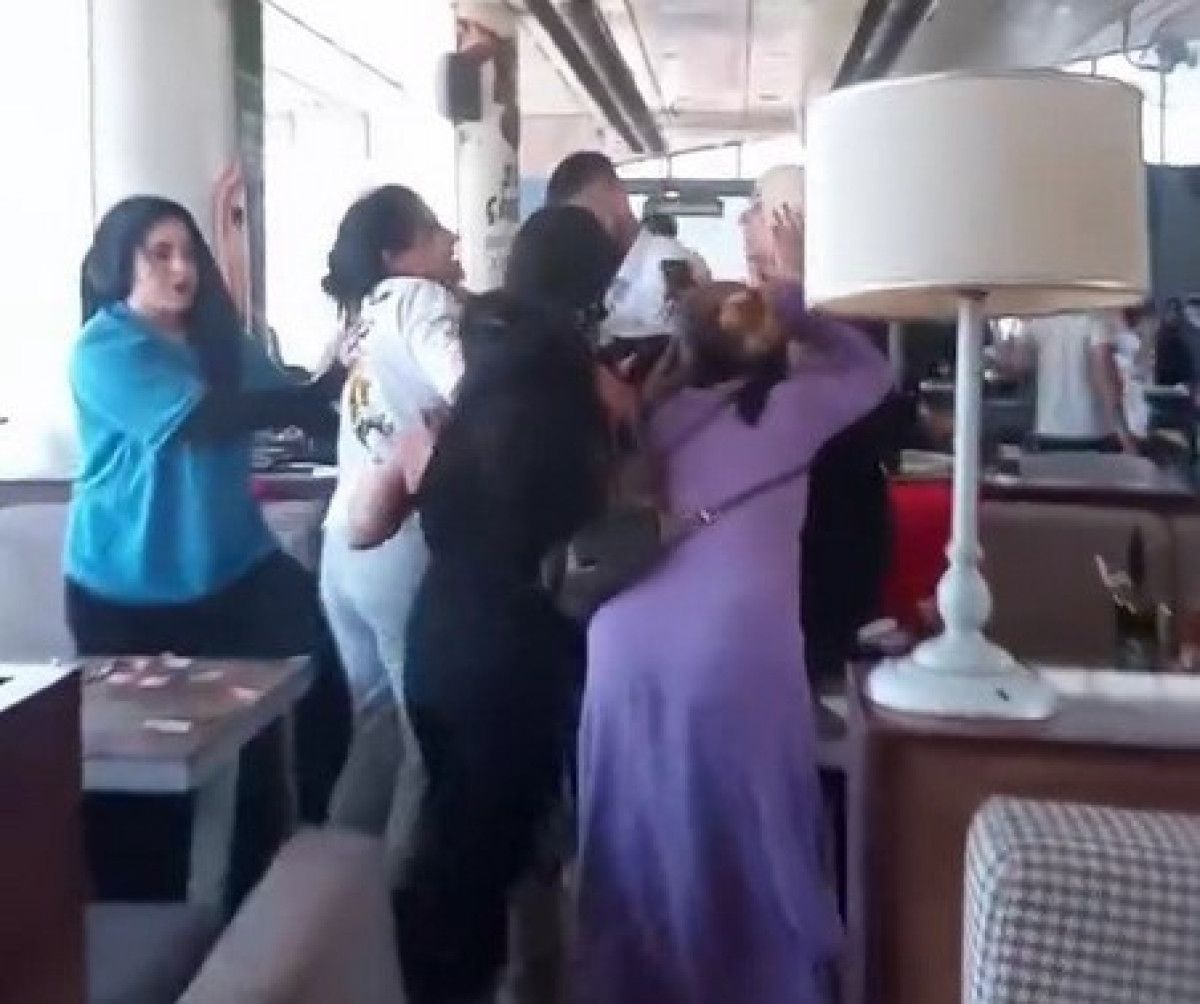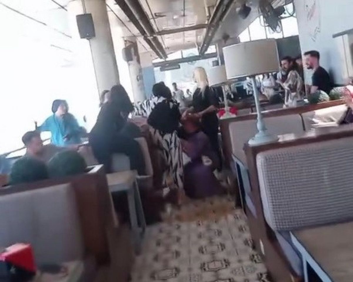Kadınların birbirine bardak fırlattığı arbede sırasında bir kişi cam modülünün bedenine isabet etmesiyle yaralandı. Olay anı etraftaki vatandaşlarca cep telefonuyla kaydedildi.