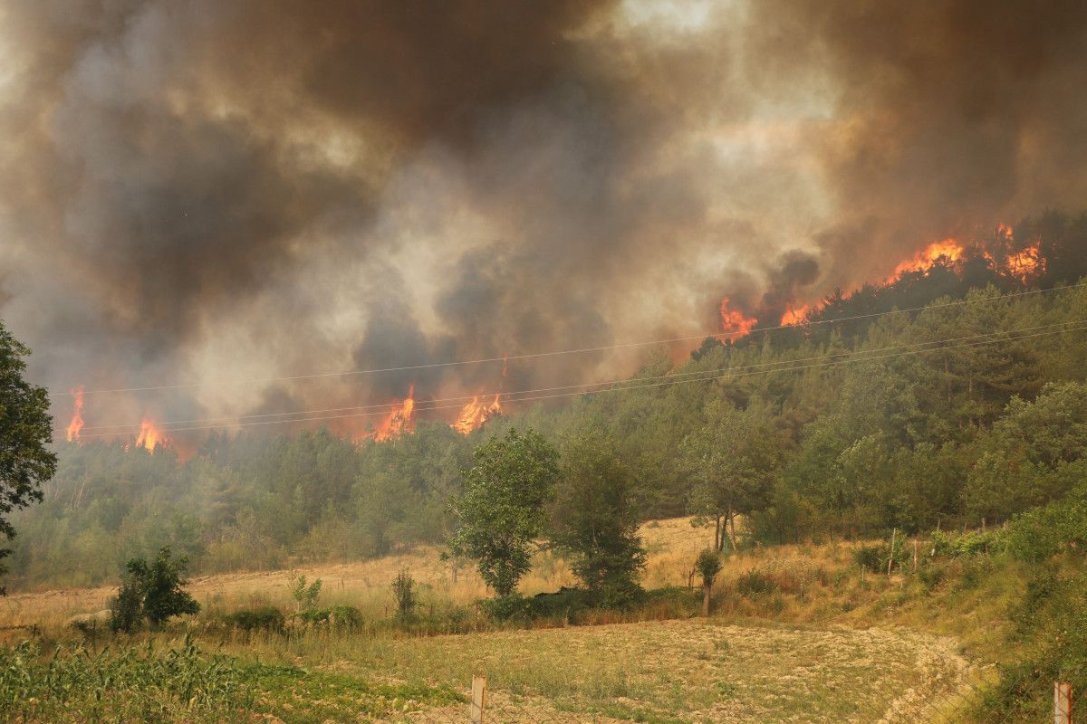 Karabük’te yaklaşık 29 saattir denetim altına alınmaya çalışılan orman yangını, şiddetli rüzgarın tesiriyle tekrar canlandı. Karabük-Ovacık kara yolu Tepealtı mevkiinde başlayan alevler, grupların tüm uğraşına karşın yine yükseldi.