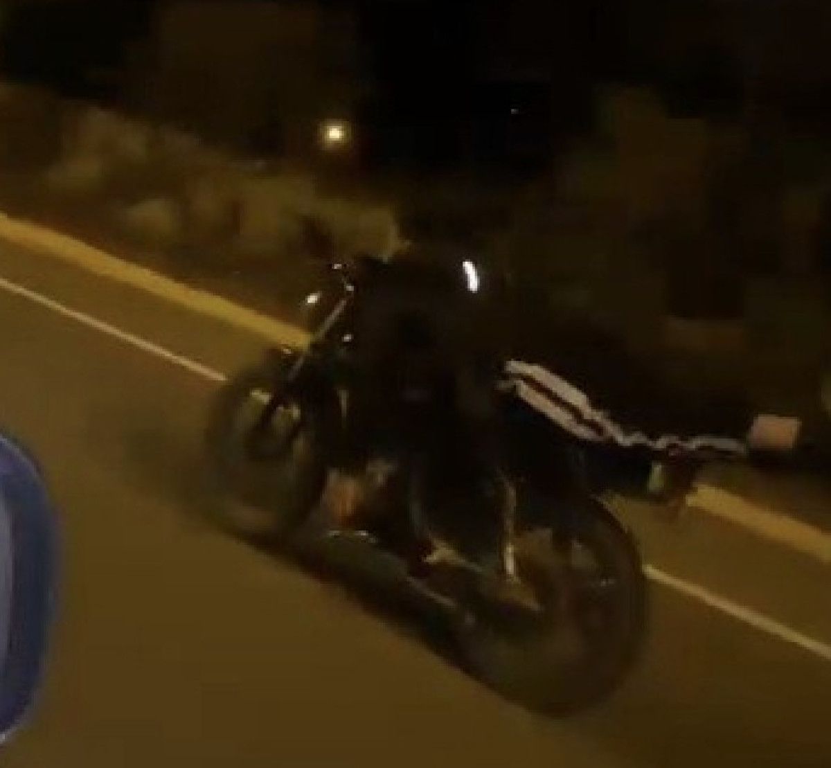 Görüntüde motosiklet kullanıcısının hem kendini görüntüleyenleri hem de trafikteki öbür araçlara aldırış etmeden tehlikeli biçimde ilerlediği yer alıyor.