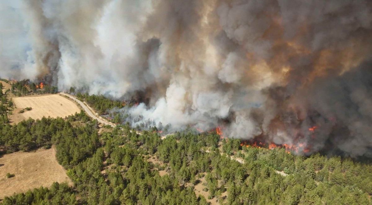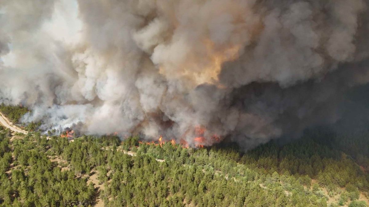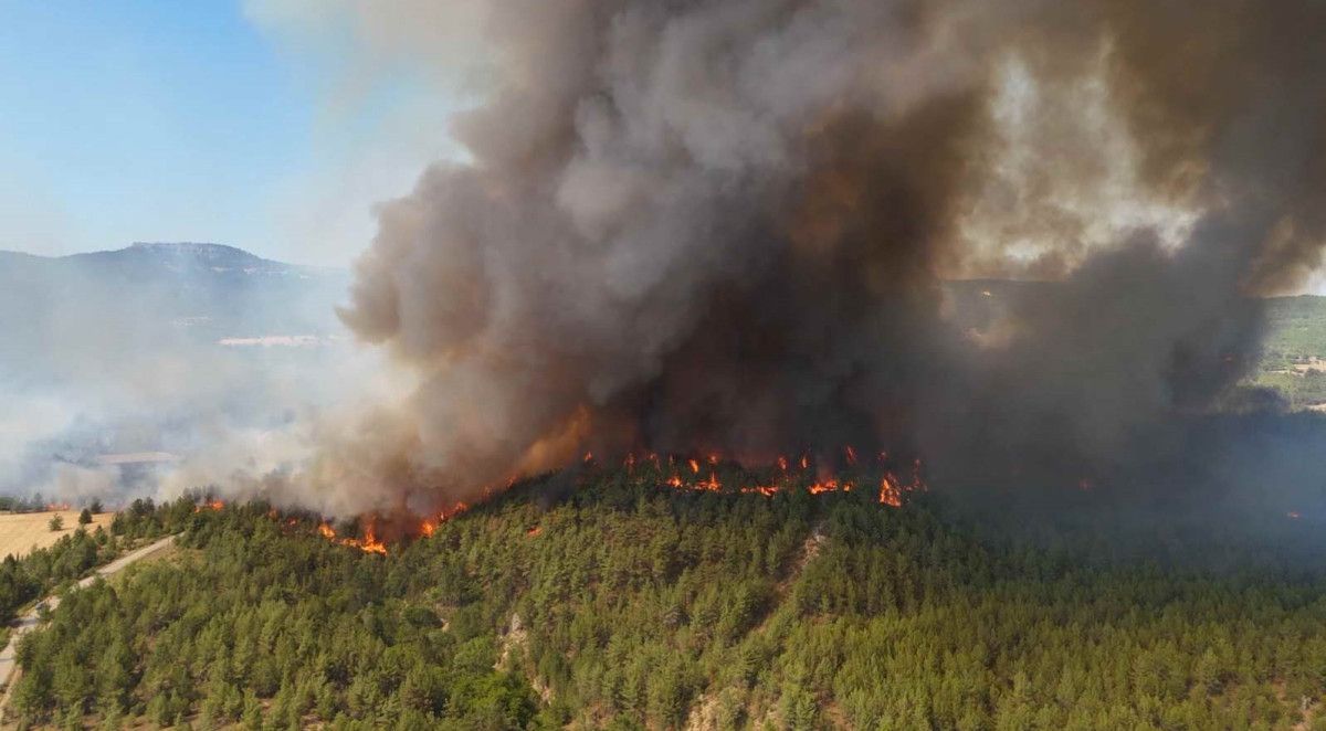 Havadan çekilen imgelerde ağır duman katmanı ve genişleyen yangın sınırı dikkat çekerken, Çavuşlar merkez ve Köprübaşı mahalleleri önlem hedefli tahliye edildi.
