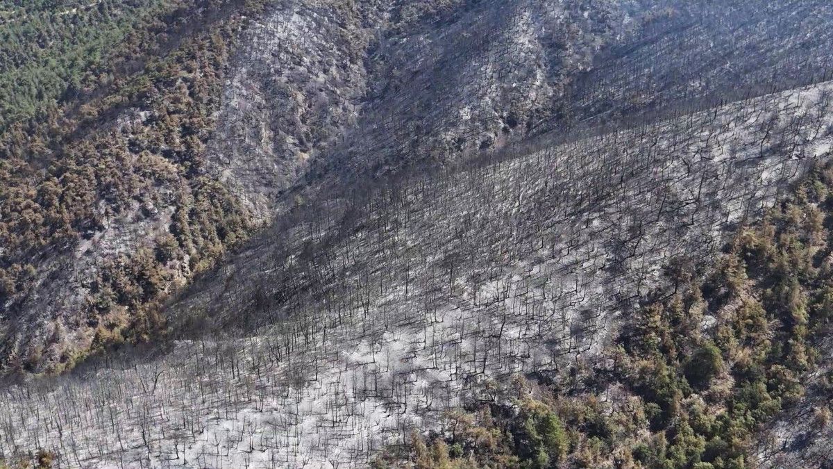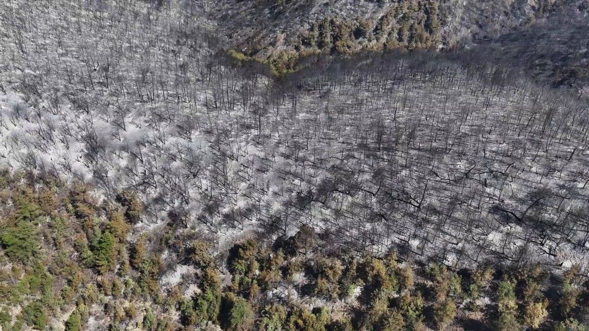 Görüntülerde ormanın büyük bir kısmının siyaha büründüğü, birtakım yerlerde dumanların devam ettiği dikkat çekti.