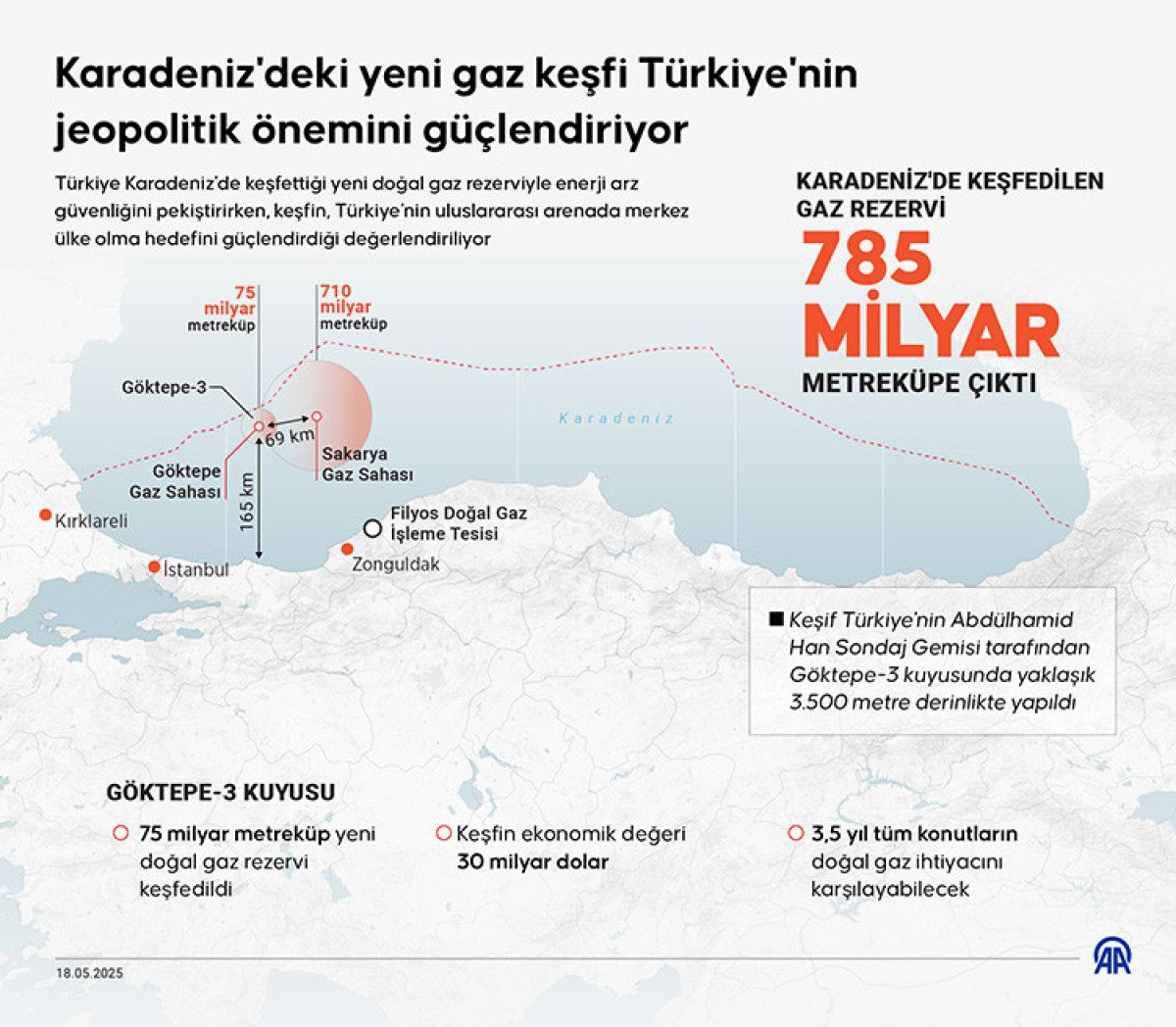 Keşfin yapıldığı Göktepe-3 kuyusu, Sakarya Gaz Alanı’nın 69 kilometre batısında, karaya ise 165 kilometre uzaklıkta yer alan Göktepe Alanı’nda bulunuyor.