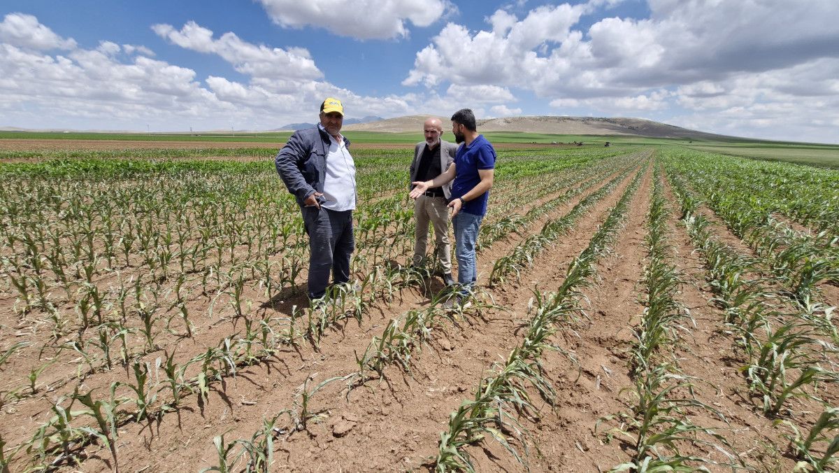Dron ile ziyan verilen mısır tarlasında incelemelerde bulunan Karaman Ziraat Odası Başkanı Mehmet Bayram, şunları söyledi: