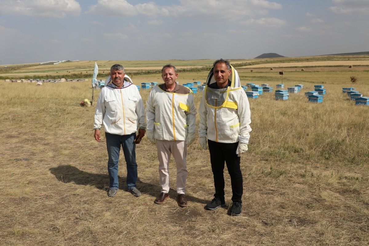 Polat, beraberindeki Tarım ve Orman Müdürü Enver Aydın ile birlikte arıcılarla bir ortaya geldi.