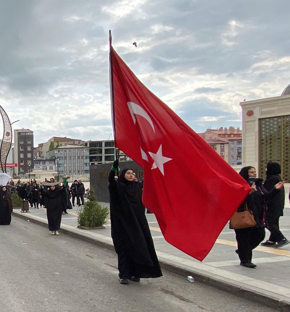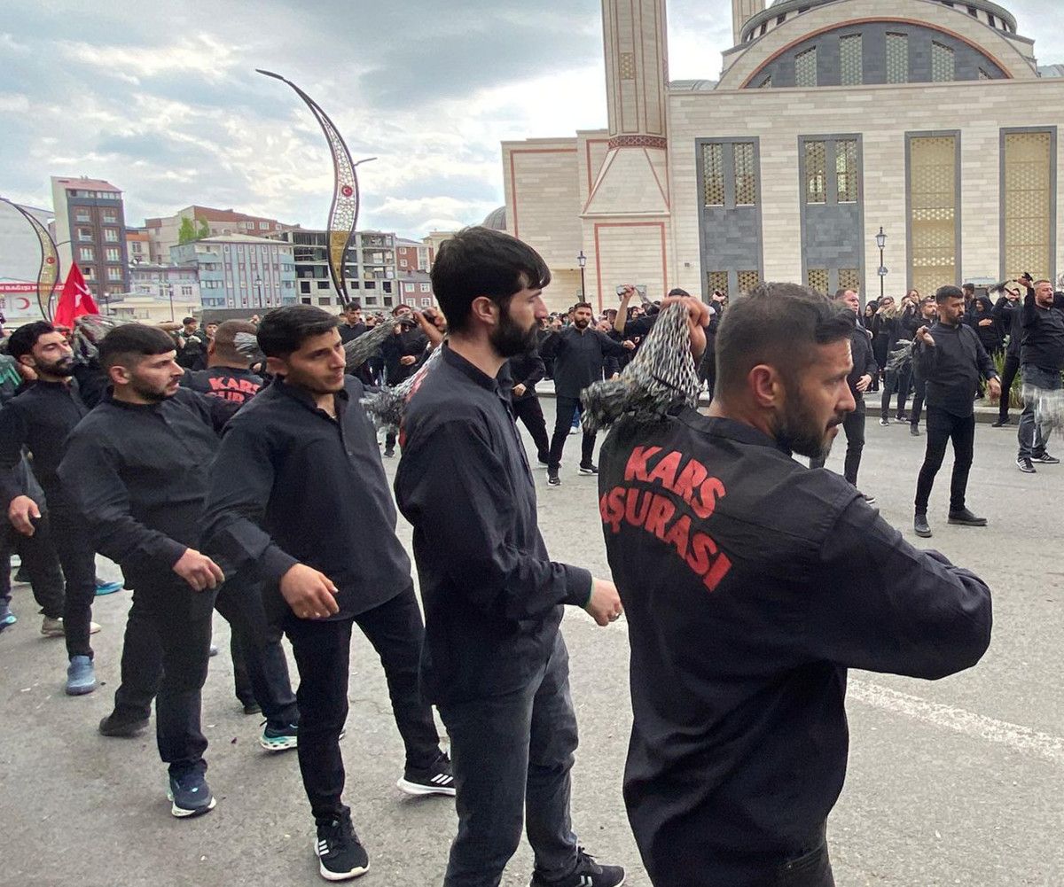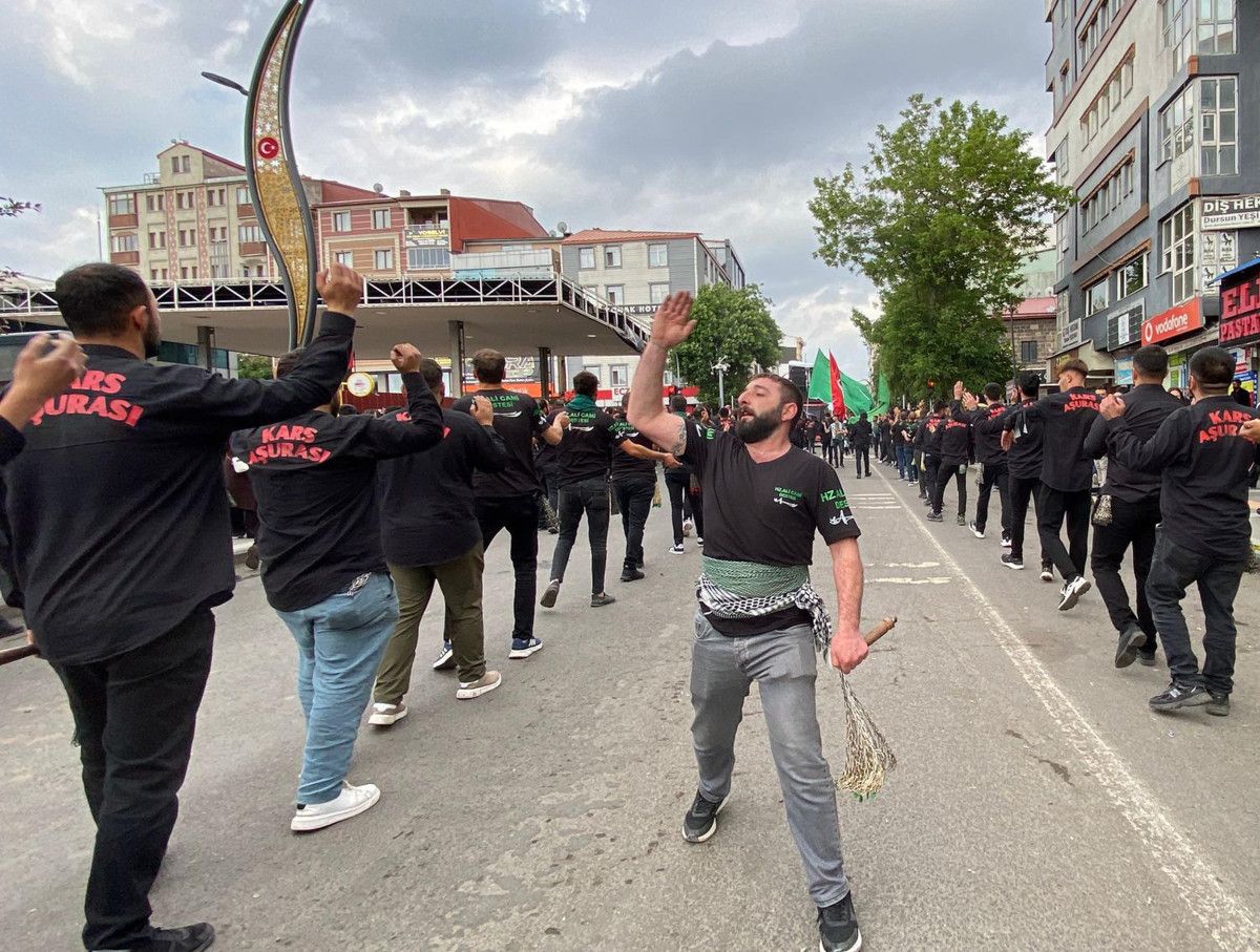 Hazreti Ali Camisi’nden başlayan yürüyüşte ellerinde Türk bayrağı, Atatürk ve Hazreti Ali’nin posterlerini taşıyan iştirakçiler, Faikbey Caddesi’nden Kars Şehitliği’ne kadar ağıtlar eşliğinde yürüyüp, sinelerine vurdu.
