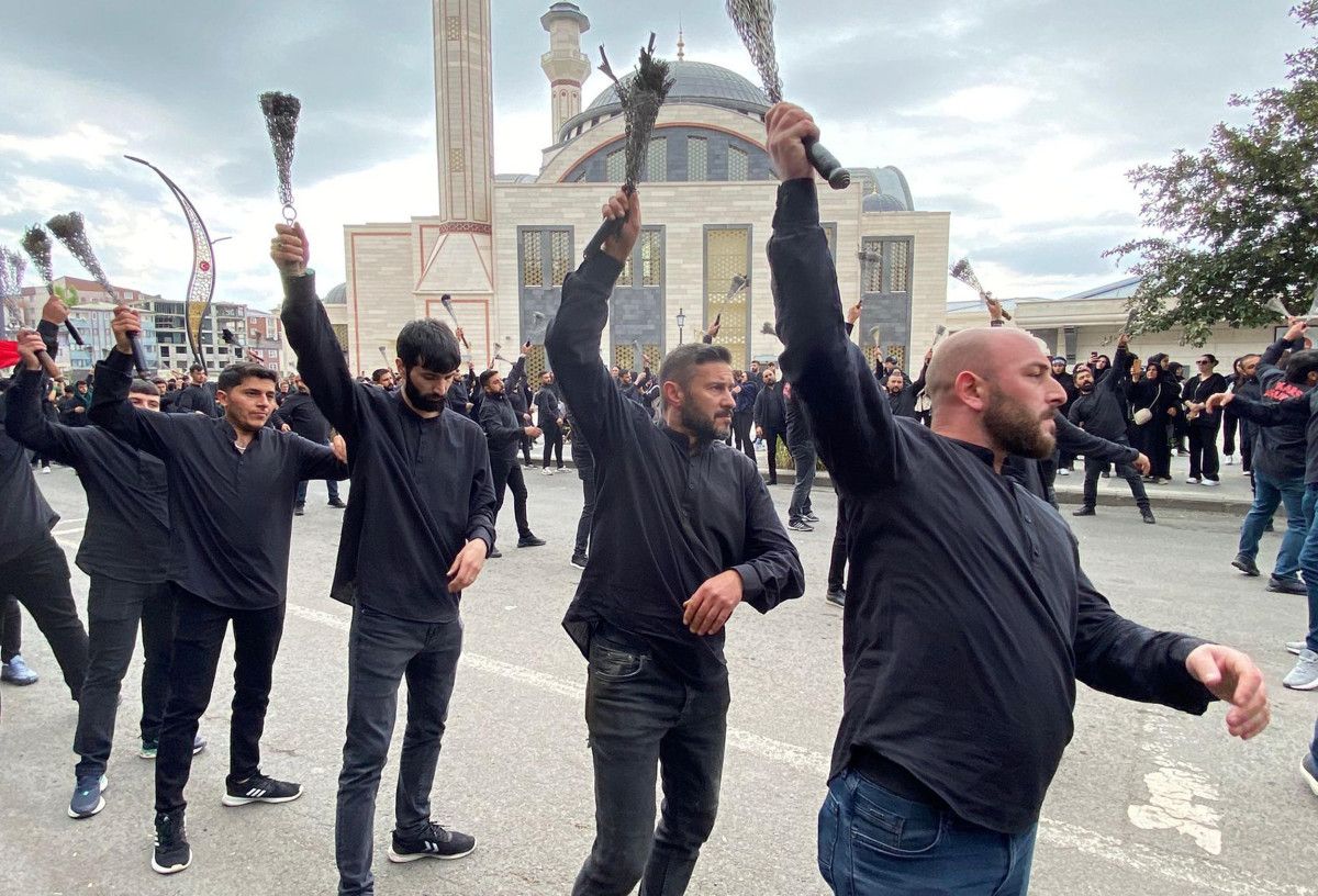 Okunan mersiyeler eşliğinde sinesini dövenler, Hazreti Hüseyin için ağıtlar yaktı.