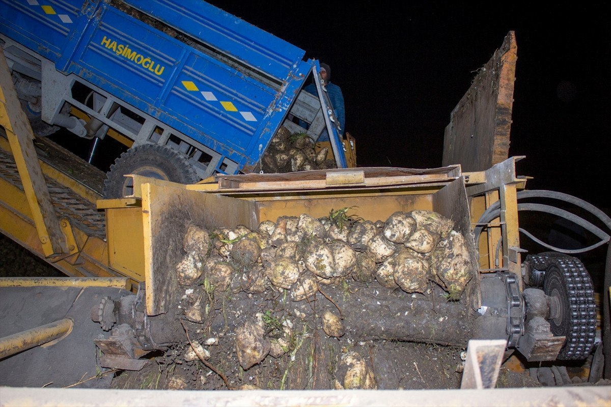 İlkbaharda bölgede etkili olan yağışlar sayesinde verimli bir sezon geçiren çiftçiler, bugünlerde de tarlalarda tarım makineleriyle pancar sökümü yapıyor.