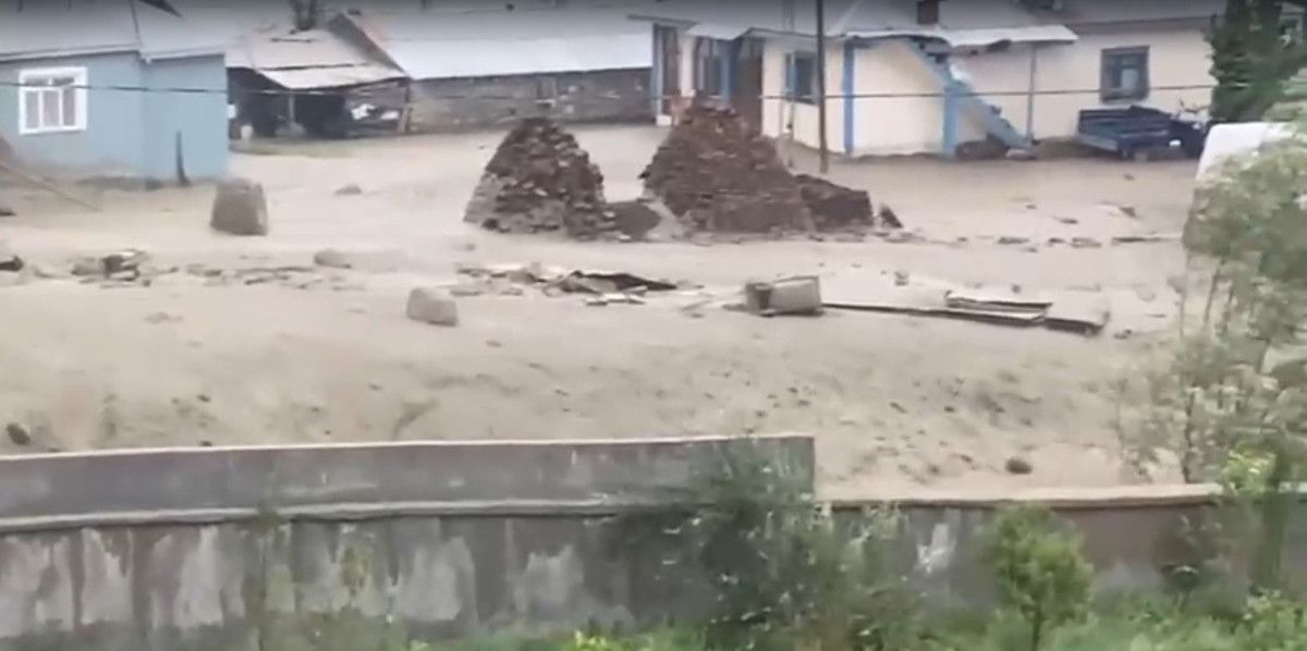 Görüntülerde, bir anda gelen sel sularının taşkın müdafaa duvarına çarpması, direkleri yıkması, köylülere ilişkin gereçleri sürükleyip götürmesi vatandaşların panik halinde konuşmaları yer alıyor.