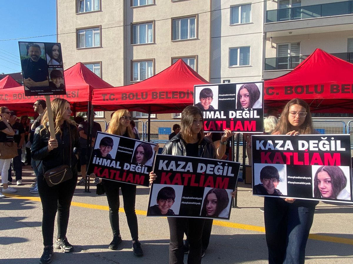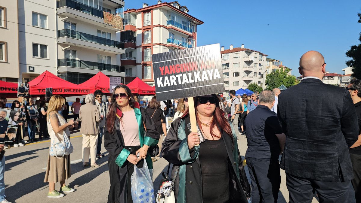 Davaya katılacak olanlar polis denetim noktasından geçirildikten sonra alana alınıyor. Çok sayıda vatandaşlar da ellerinde ‘Başka Ceren yok’, ‘İhmail değil, mümkün kast’, ‘Yangının ismi Kartalkaya’, ‘Hesap verilmeden yas tutulmaz’ yazılı dövizler taşıdı.