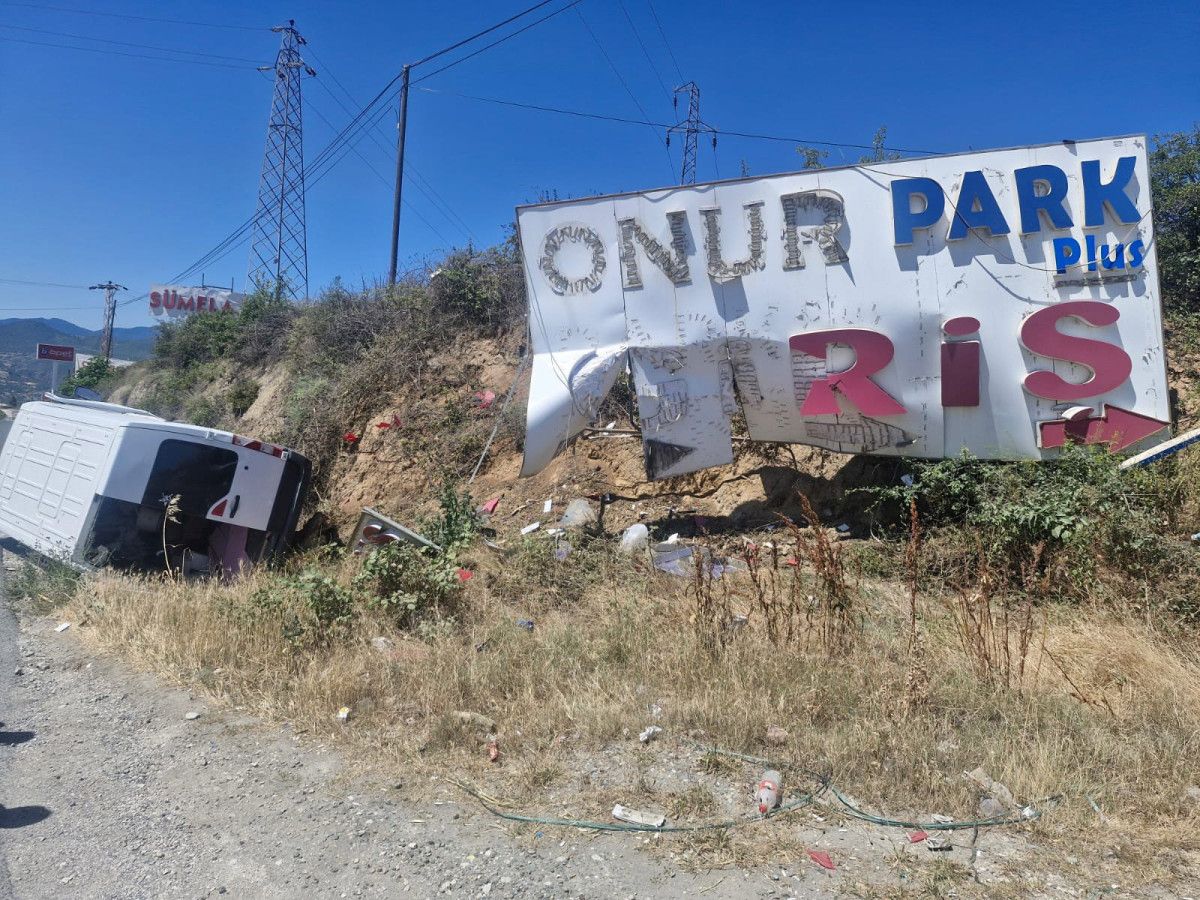 Kontrolden çıkan minibüs, yol kenarında bulunan büyük reklam panosuna çarptı.