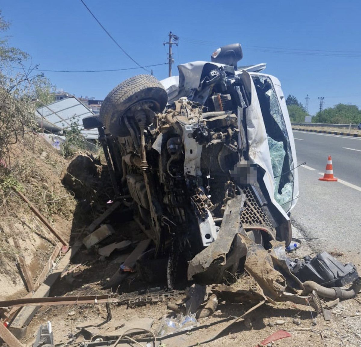 Çarpmanın tesiriyle savrulan minibüs, su kanalına düşerek devrildi.