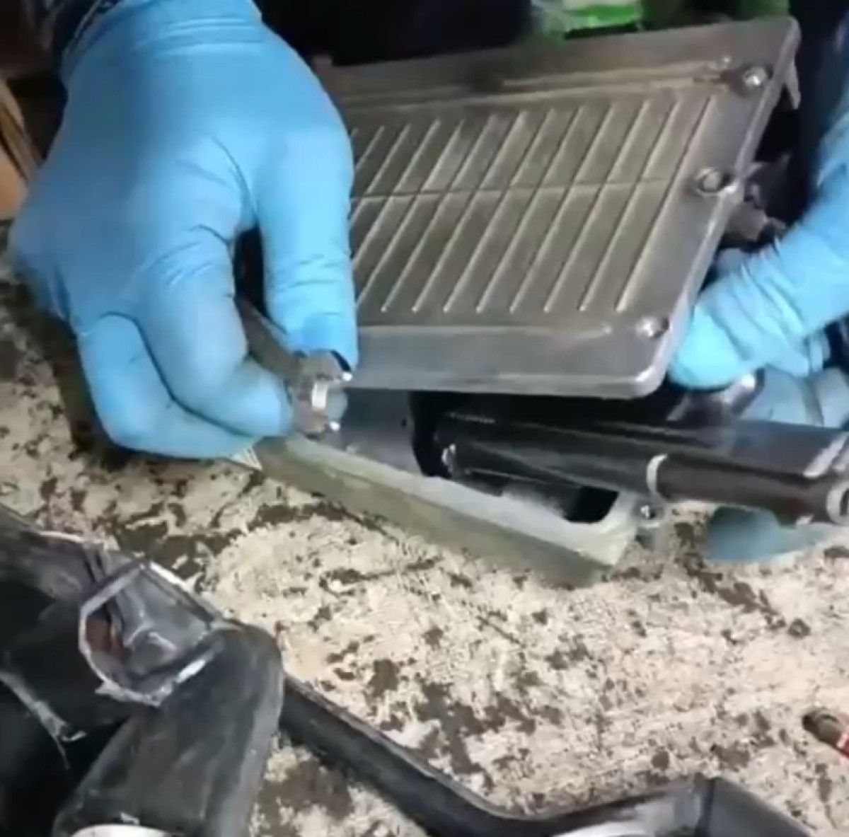 Aramada 2 adet ruhsatsız av tüfeği, 11 adet kartuş ile iş yeri içinde bulunan araç kesimleri içine gizlenmiş vaziyette 55,20 gram metamfetamin, 20,90 gram kannabinoid, 1 adet ruhsatsız tabanca ve 7 adet fişek ele geçirildi.