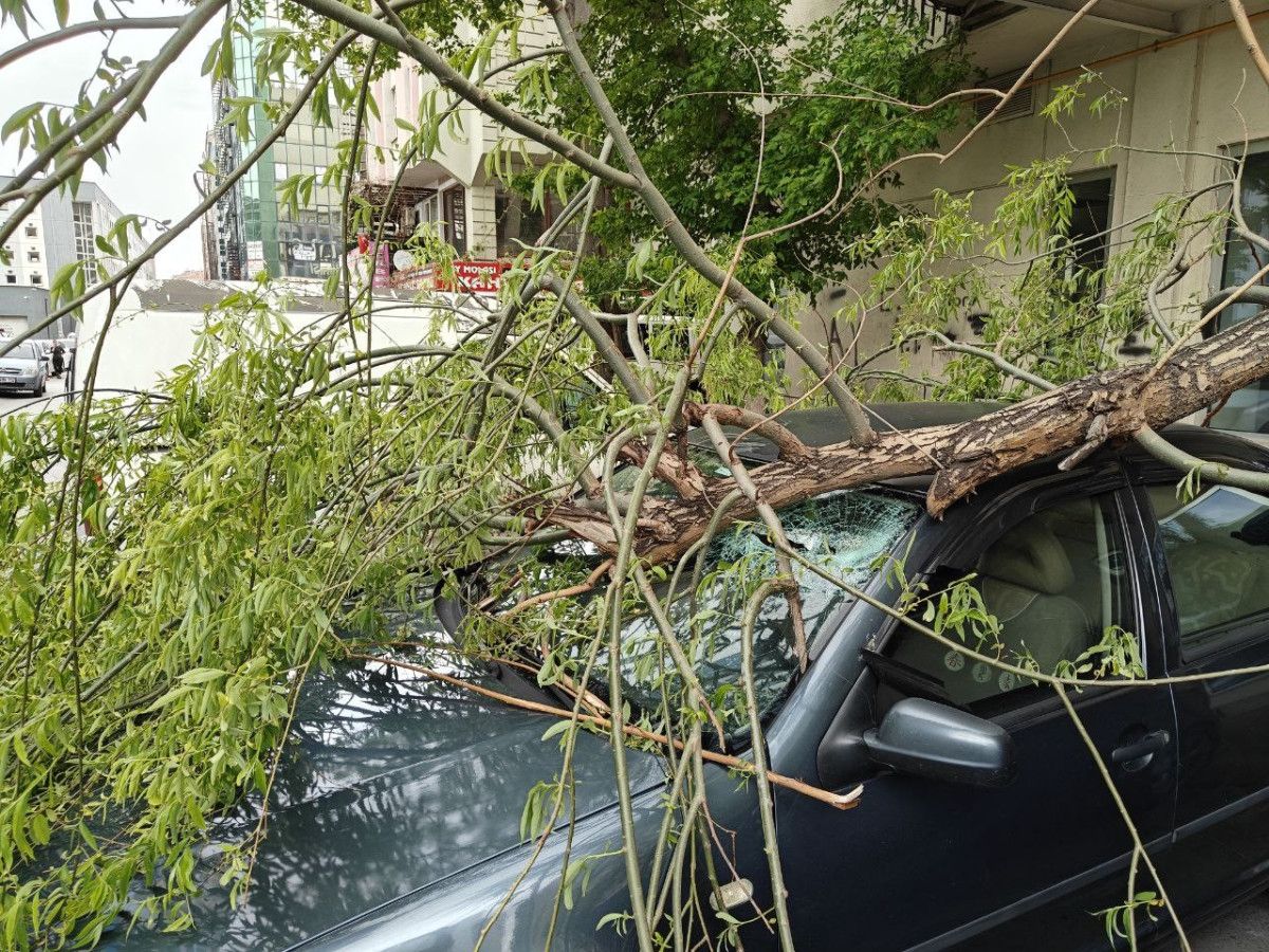 Kayseri’nin Kocasinan ilçesinde şiddetli rüzgarın tesiriyle kırılan bir ağaç kısmı, park halindeki arabaların üzerine düştü.