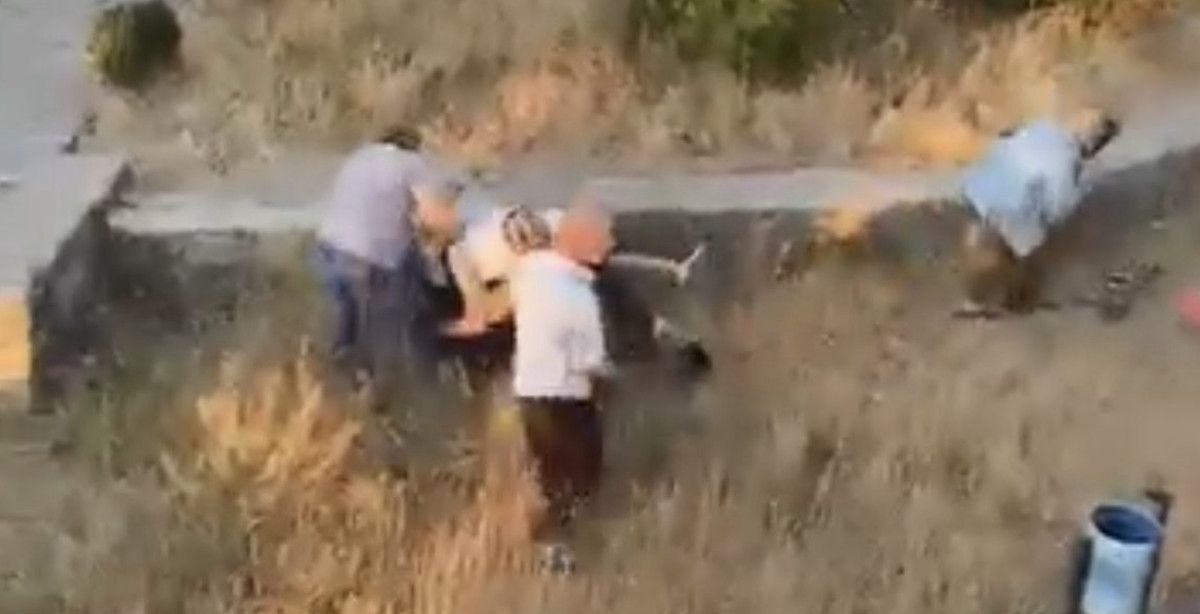 Bu ortada olay, etraftaki bir kişi tarafından cep telefonuyla kayda alındı.