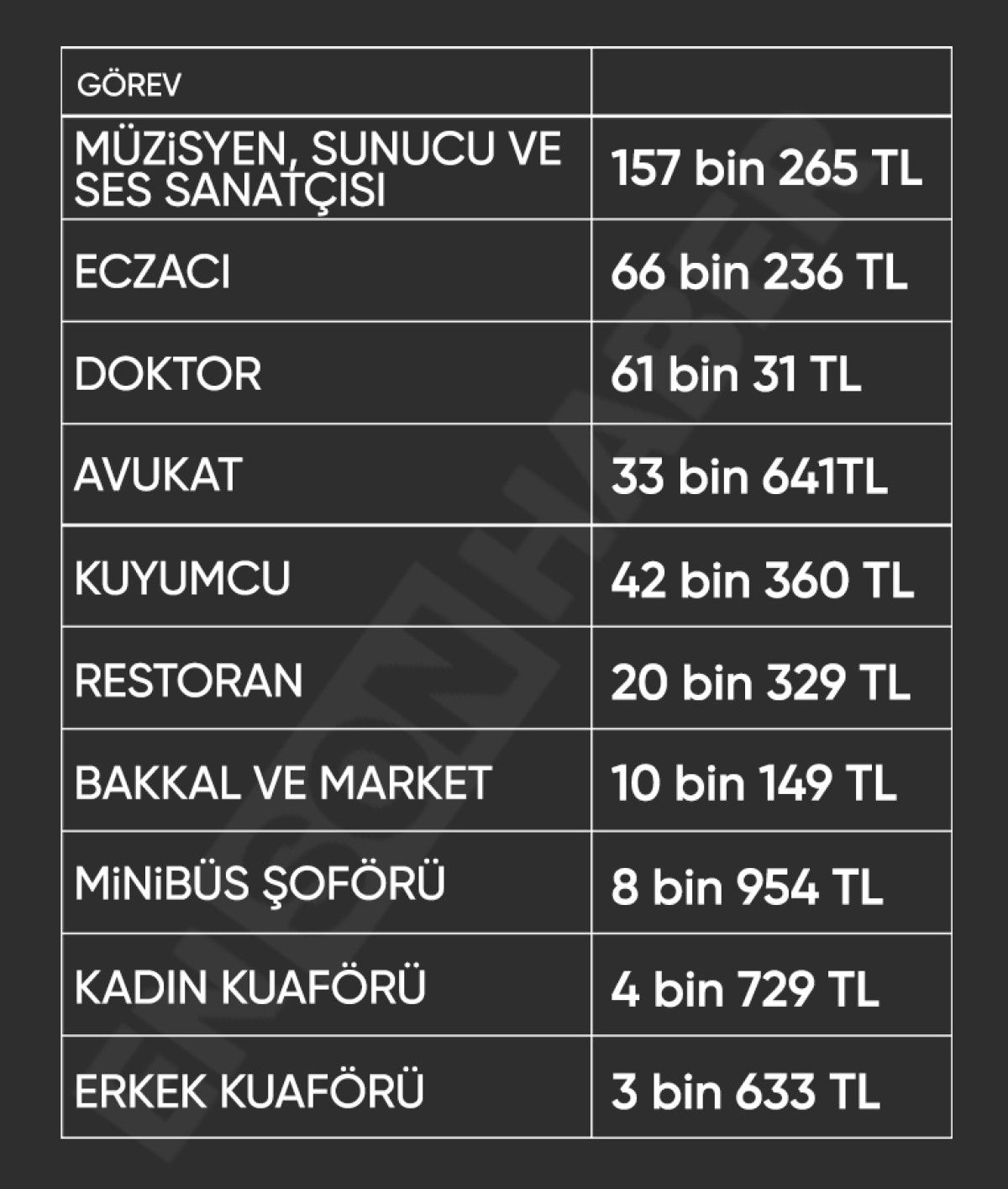 Müzisyen-Ses sanatçısı-sunucu: 157 bin 265 TL