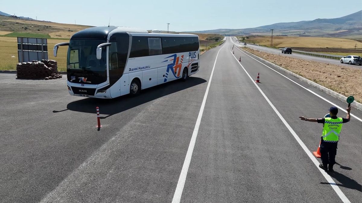 Karakeçili-Kaman karayolunda sefer yapan otobüse binen sivil jandarma, sürücünün trafik kurallarına uyup uymadığını takip etti.
