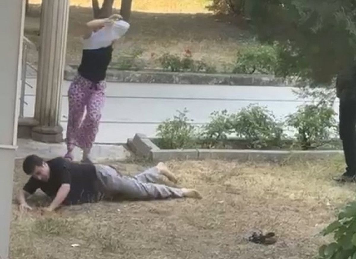 Bu sırada, etrafta bulunan bir bayanın tişörtünü çıkararak A.A.’ya tampon yapması cep telefonu kamerasıyla görüntülendi.