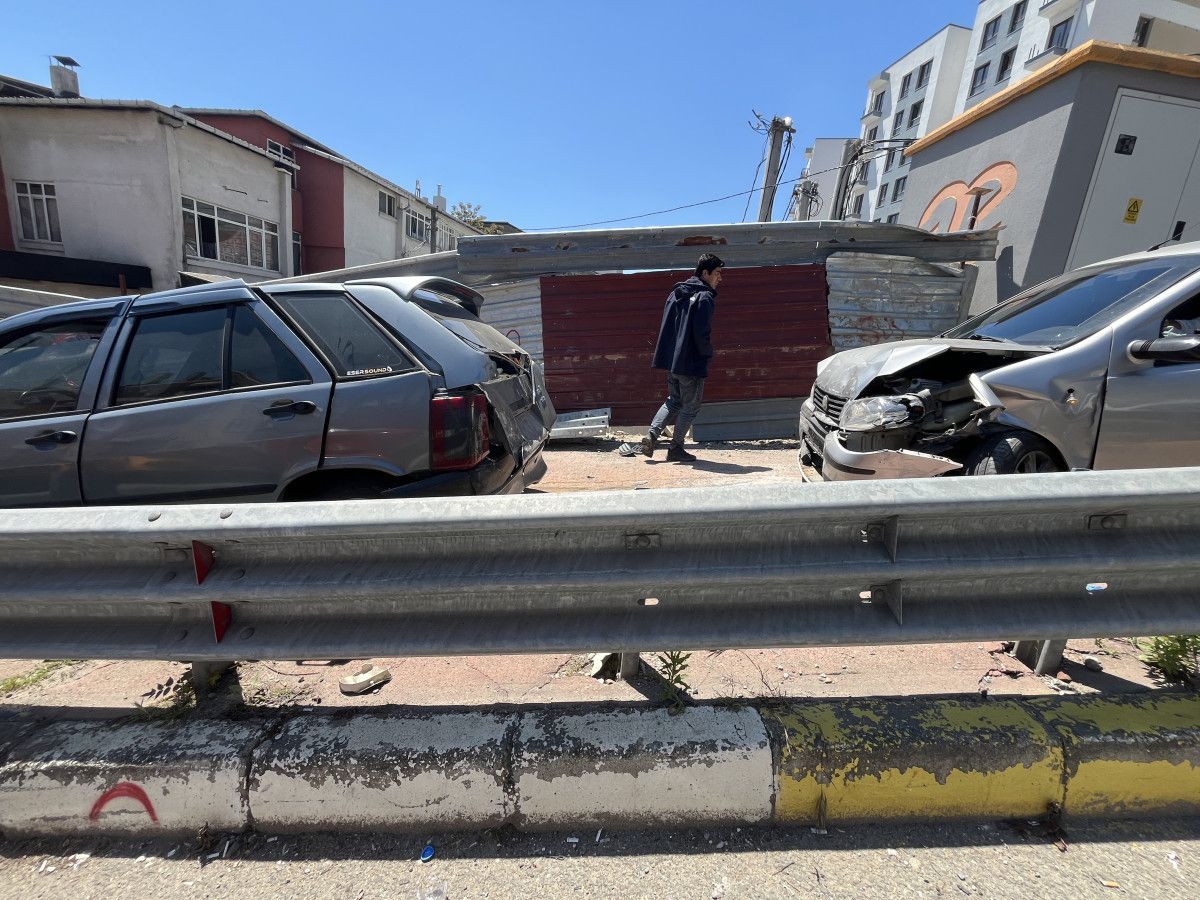 Sürüklenen arabalar yol kenarındaki kaldırıma çıktı.