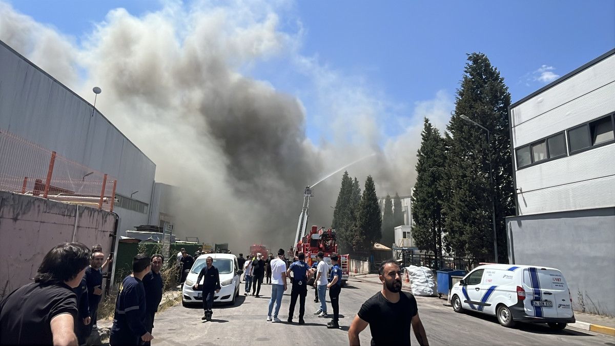 Üretim alanında bulunan plastik gereçlerin tutuşmasıyla başlayan yangın kısa müddette büyüdü.