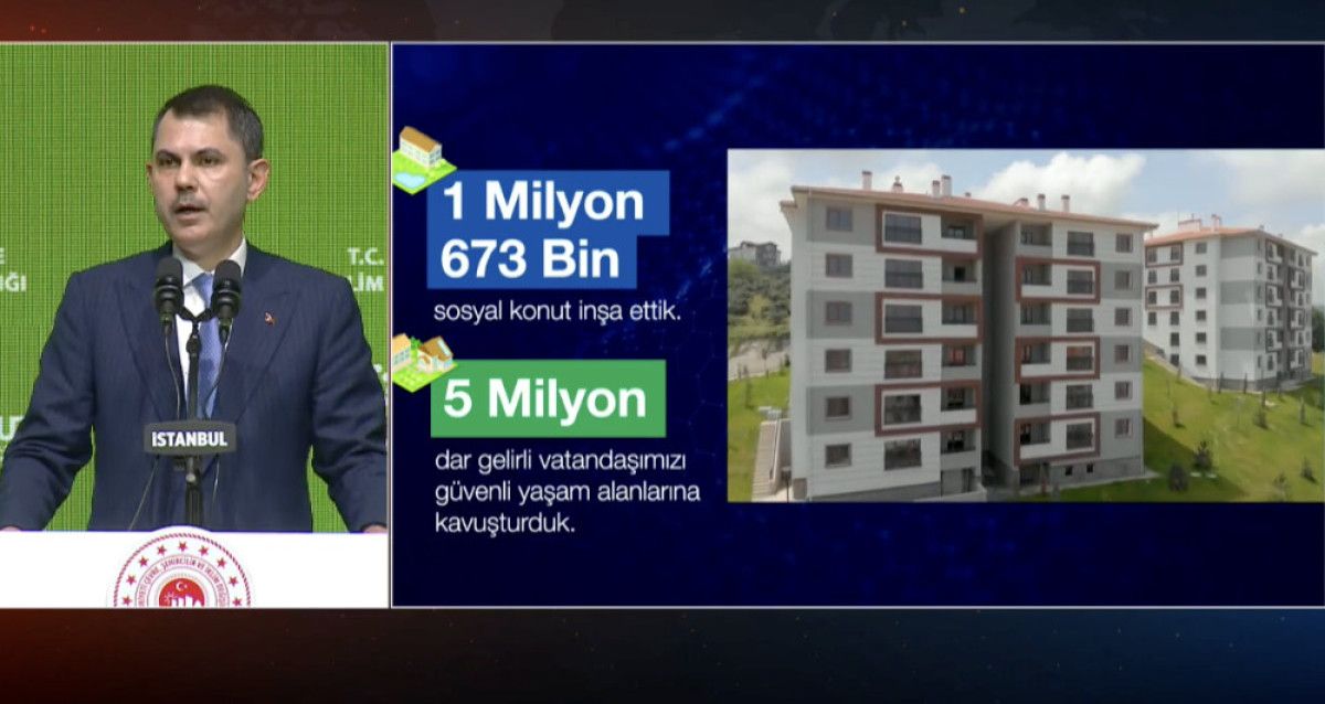Kentsel dönüşüm projelerinin 81 vilayette devam ettiğini aktaran Kurum, “Özellikle İstanbul’umuzu riskli yapılardan kurtarmak, o beklenen büyük zelzeleye hazırlamak için var gücümüzle çalışıyoruz.
