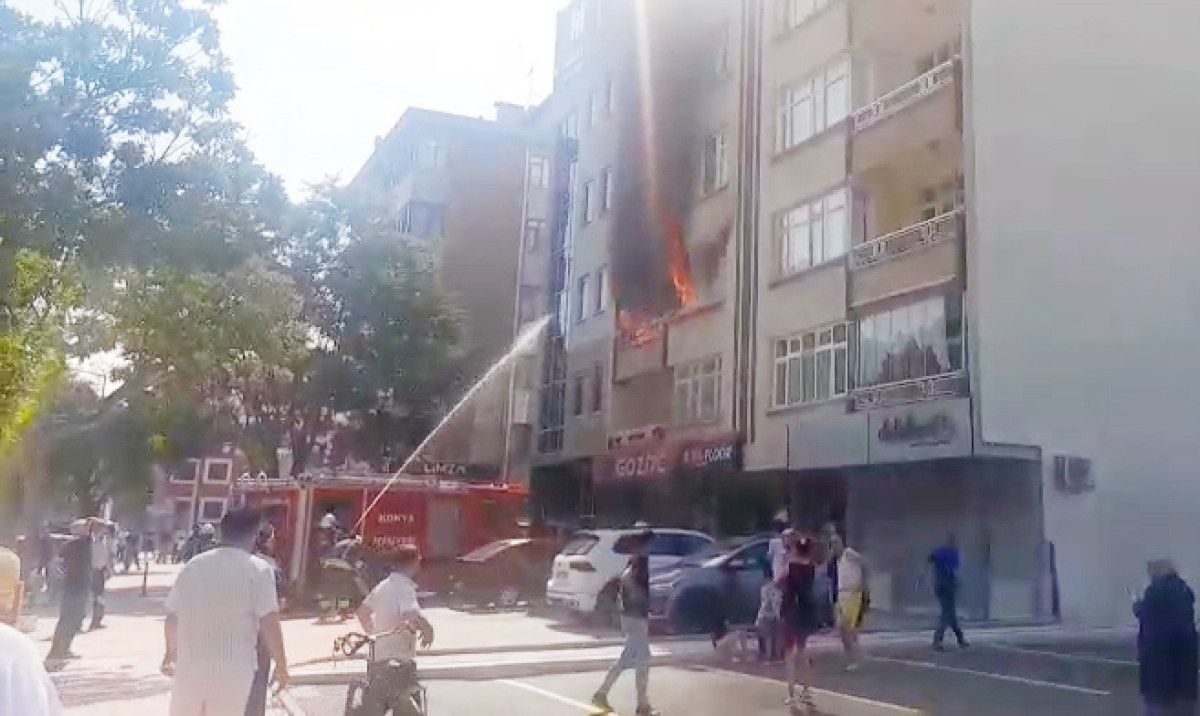 Polis grupları apartmanda yaşayanları tahliye ederken, yangın itfaiye takımlarının müdahalesiyle söndürüldü.