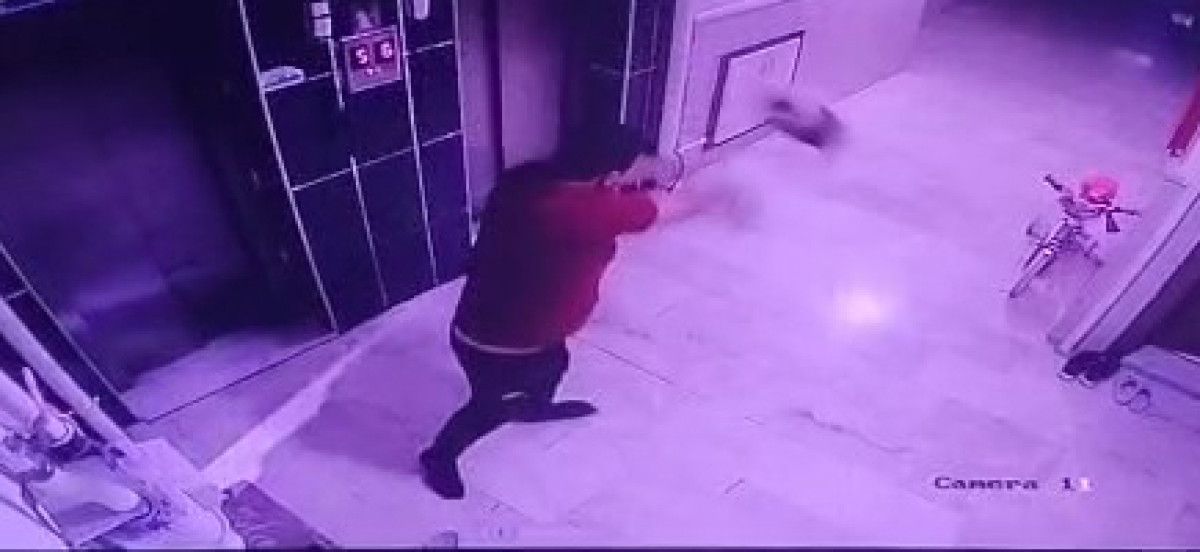 Görüntülerde, Ahmet Ş.’nin kediyi binanın güvenlik kamerasına gösterip yere fırlattığı, daha sonra giriş kapısını açıp dışarı çıkmasını sağladığı görüldü.