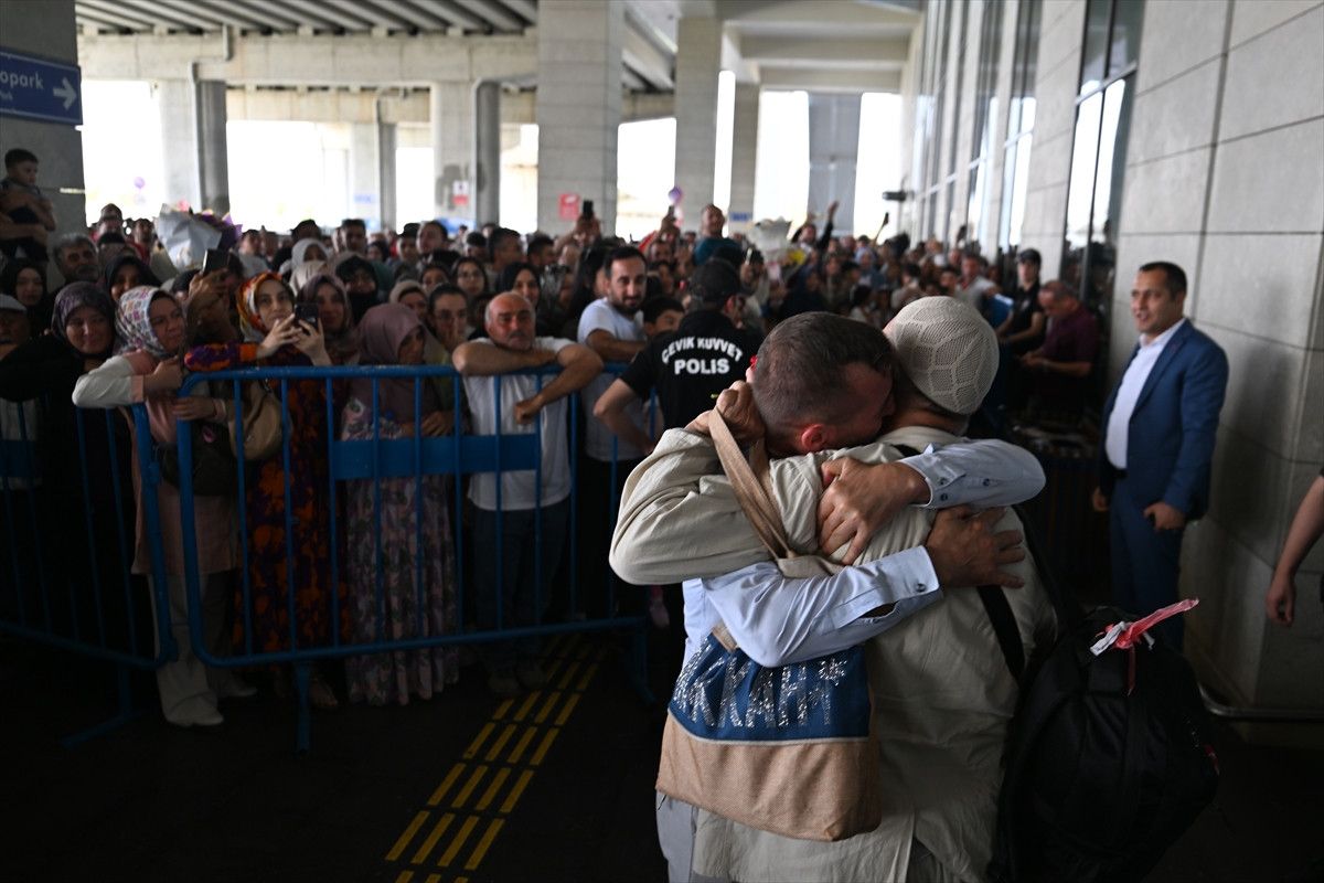 Hac ibadetlerini tamamladıktan sonra Türkiye’ye dönen hacılar, uzun müddet yakınlarıyla kucaklaşarak hasret giderdi.