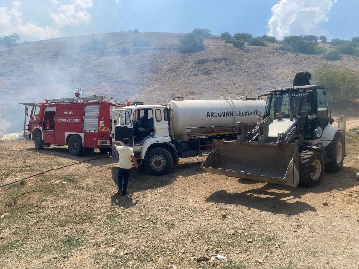 Yangına Arguvan Belediyesi grupları de takviye verdi.