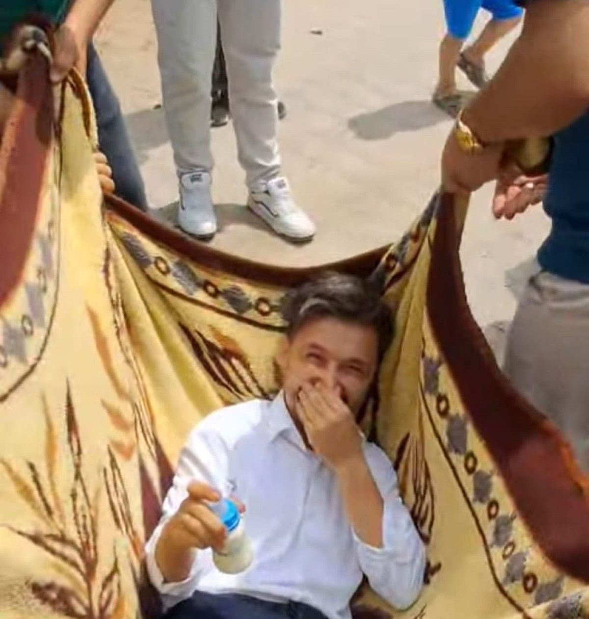 Sürprizler bununla da hudutlu kalmadı. Damat ve sağdıcın başında yumurta kıran arkadaşları, akabinde gazlı içecek döktü.