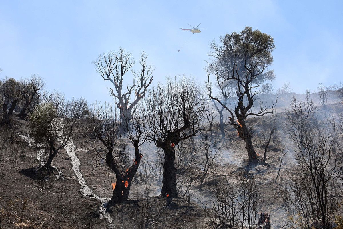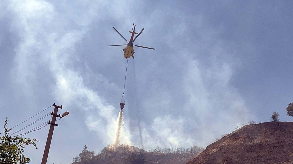 Çevredekilerin ihbarı üzerine bölgeye İzmir Orman Bölge Müdürlüğü’ne bağlı 1 helikopter, 5 arazöz, 2 su ikmal aracı ve itfaiye grupları sevk edildi.