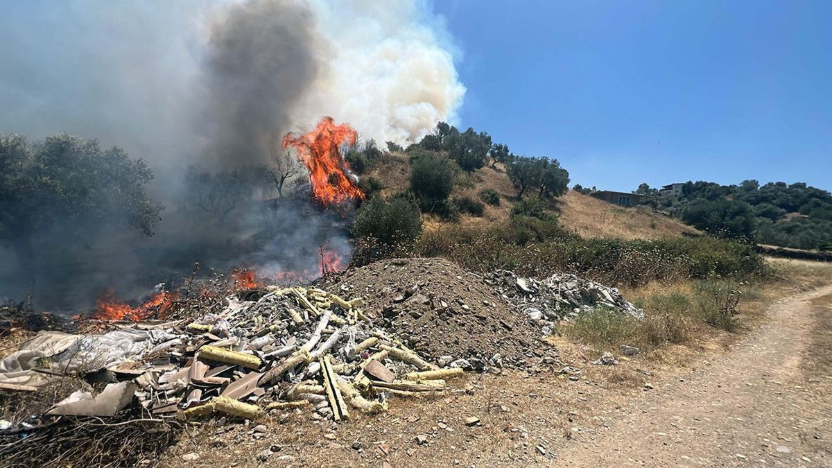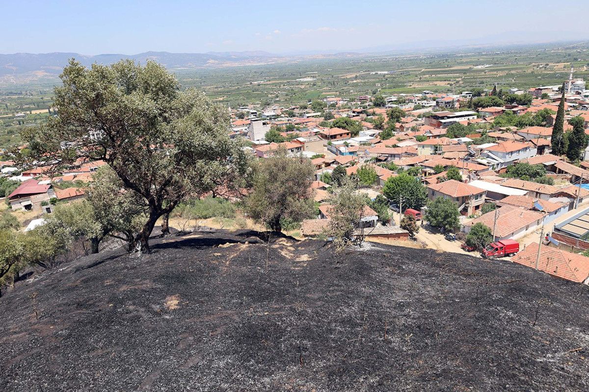 Manisa’nın Turgutlu ilçesine bağlı kırsal Derbent Mahallesi’ndeki yerleşim yerlerine yakın bölgedeki tarım toprağında saat 13.00 sıralarında şimdi belirlenemeyen bir nedenle yangın çıktı.