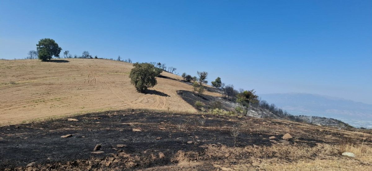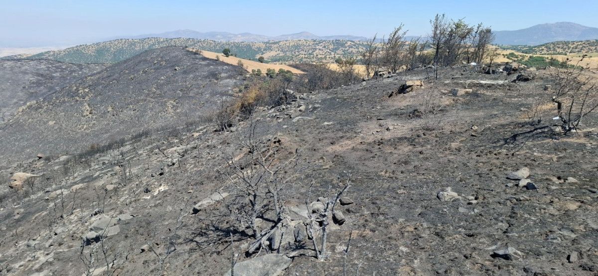 Büyük bir yıkıma yol açan yangından geriye küle dönen meskenler ve tarlalar kaldı.