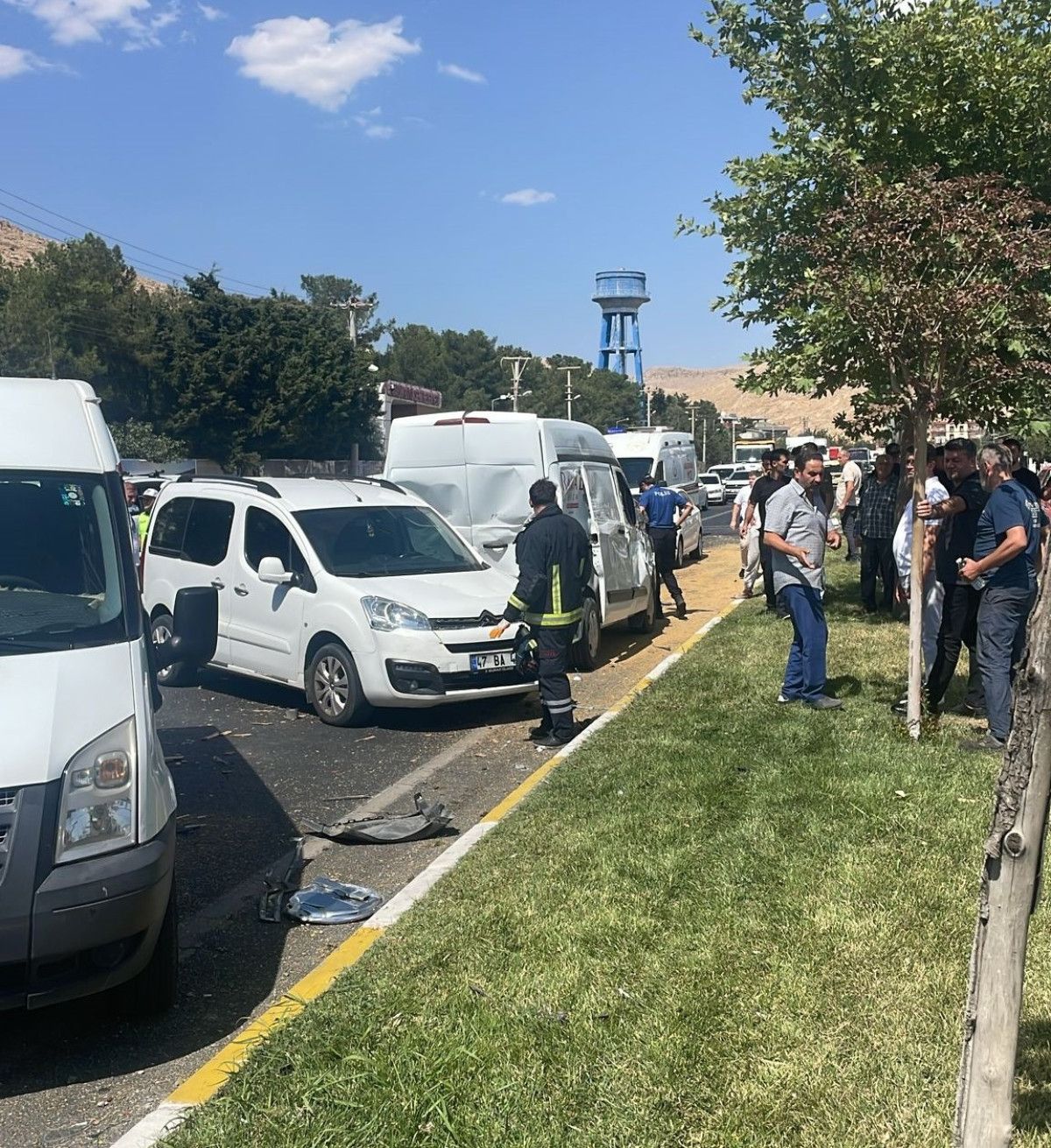 Sürücülerin isimleri ve plakaları şimdi öğrenilmeyen 3 minibüs, 3 araba ile 1 hafif ticari araç, Mardin Büyükşehir Belediyesi önünde çarpıştı.
