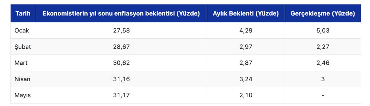 Öte yandan, ekonomistlerin 2025 sonu enflasyon beklentisi mayıs ayı prestijiyle yüzde 31,17 oldu.