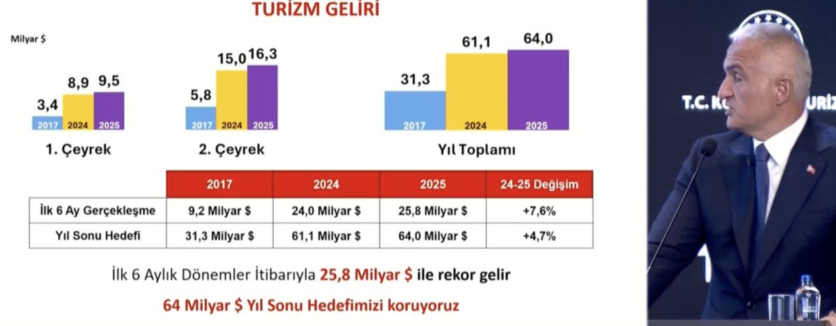 Bakan Ersoy, 2025’in ilk altı aylık gelirin yüzde 7,6 artışla 25,8 milyar dolarla rekor kırıldığını şöyle ilan etti: