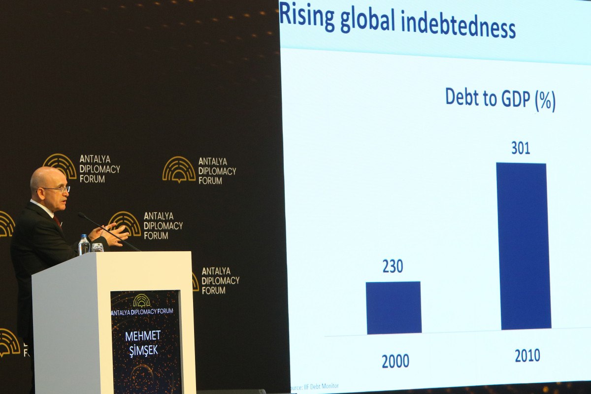 Küresel borçların son 25 yılda 100 puandan fazla arttığını, uzun vadeli yüksek faizlerin ülkeleri zora sokabileceğini söyleyen Bakan Mehmet Şimşek, Türkiye’nin toplam borçluluğunun dünya ve gelişmekte olan ülke ortalamalarının altında kaldığını kaydetti.